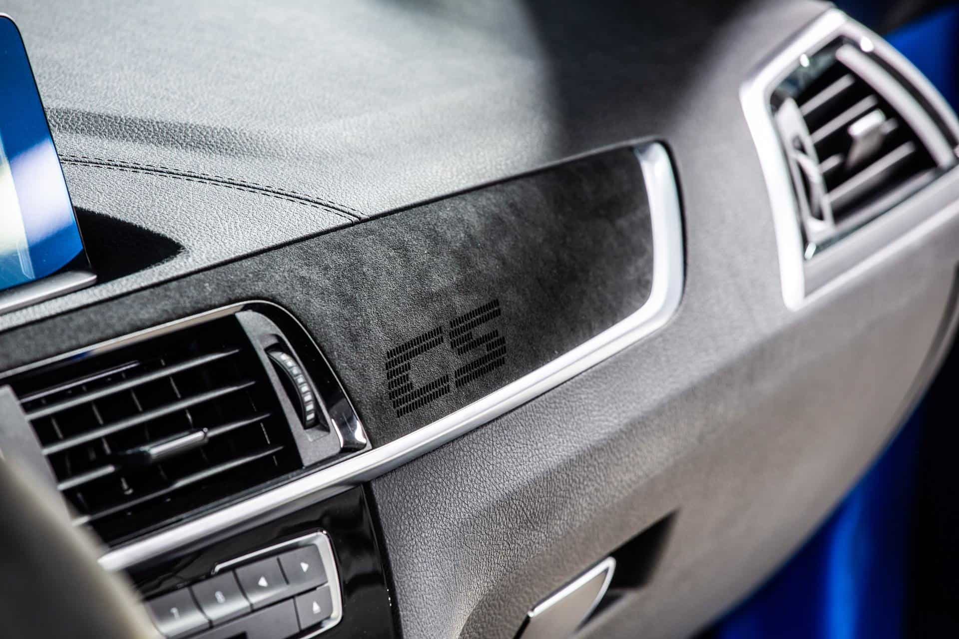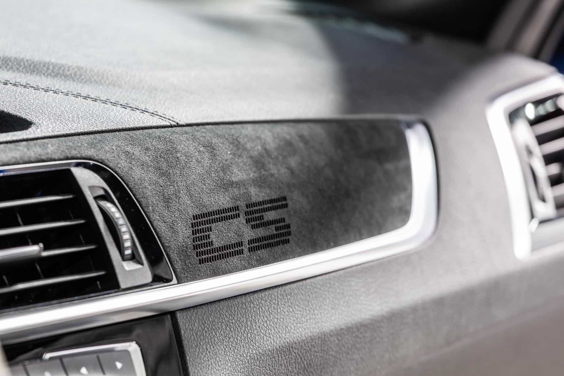 On the inside, not much has changed either. There are key changes when it comes to the seats, which are now the same seats as from the F8x M3/M4 CS, with the signature holes in the backrest and Merino leather, no longer Dakota. You will find the same Merino leather on the rear bench, the door arm rests and the handbrake grip. The steering wheel is full Alcantara and on the dashboard you will find an Alcantara patch with an embossed CS logo.