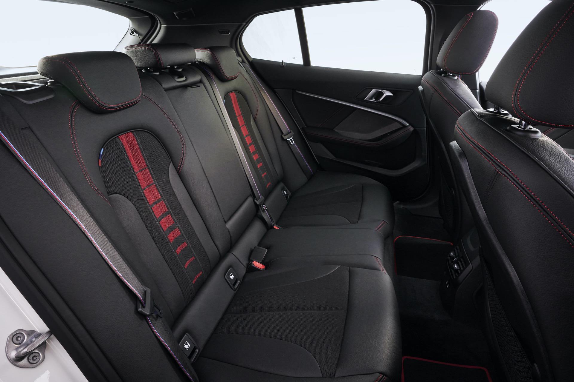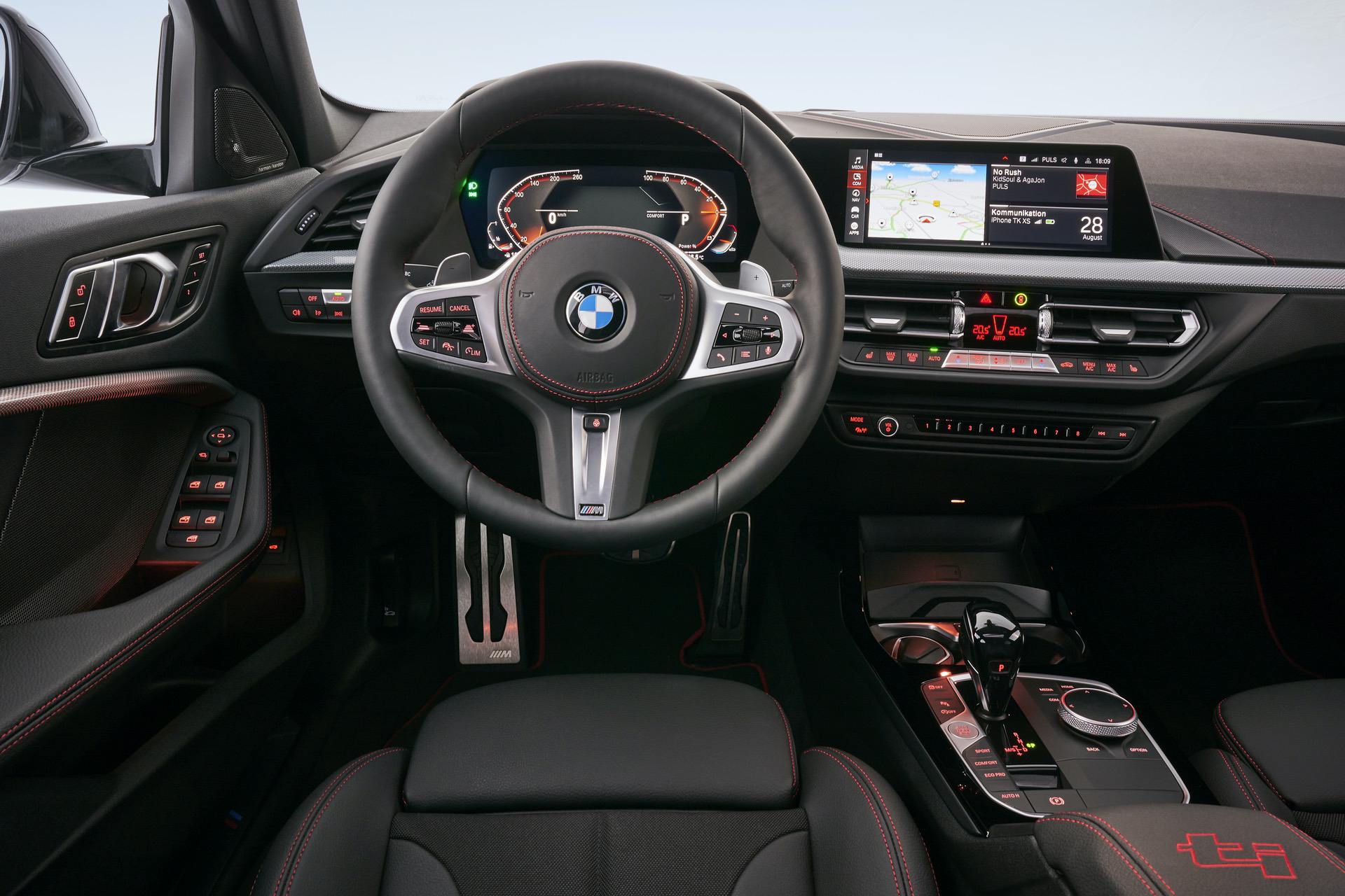 The inside is much the same — it’s essentially identical to the M135i just with more red touches and some “ti” badges. That’s fine, though, as the cabin is nice enough looking and is made from rich materials. So no complaints there, even if it’s a bit unsurprising.