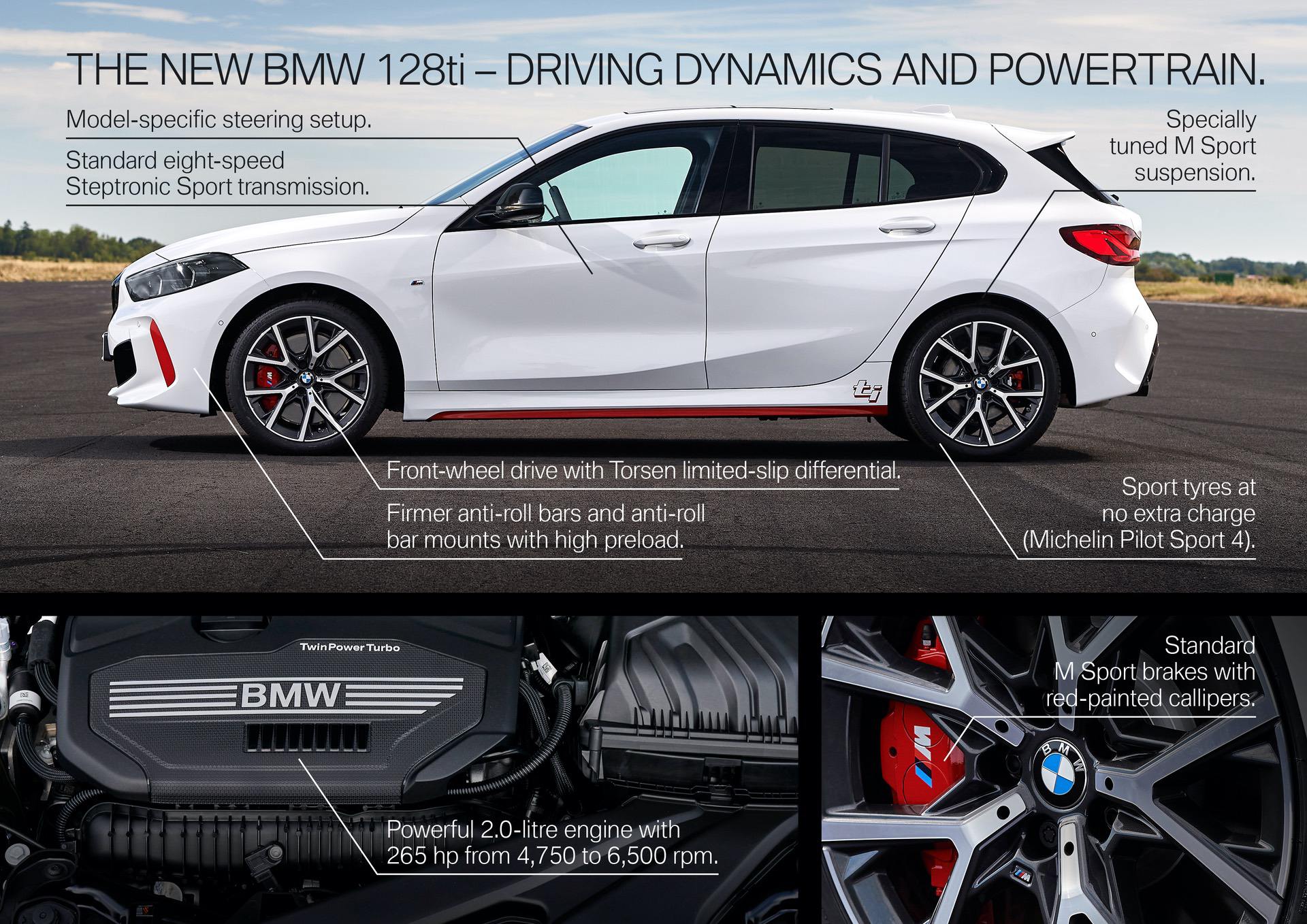 Sweetening the deal even further are the M Sport brakes, which are carried over from the M135i. That means the BMW 128ti gets four-piston monoblock calipers up front, with floating single-piston calipers out back. The calipers will also be painted red, which will differentiate the 128ti from its blue-calipered M135i sibling.