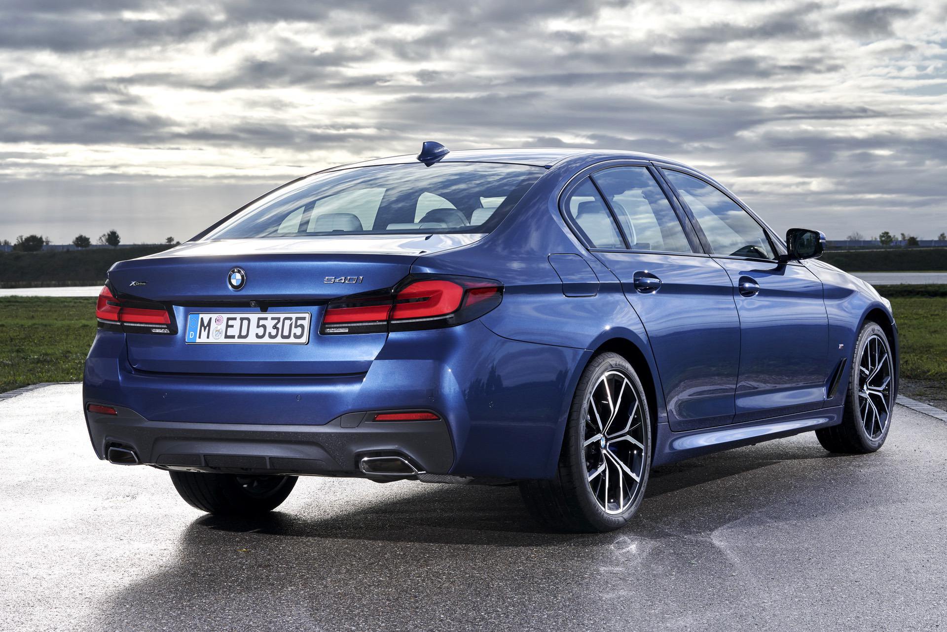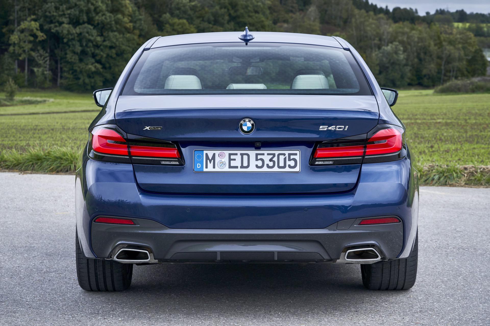 The new BMW 5 Series also premieres additional standard and BMW Individual exterior paint works, like the Bernina Gray Amber Effect, the Phytonic Blue metallic or the Individual shades of Aventurine Red and Tanzanite Blue. Another visual highlight of the refreshed 5 Series generation are the trapezoidal exhaust pipe finishers at the rear end, which are now standard on all versions.
