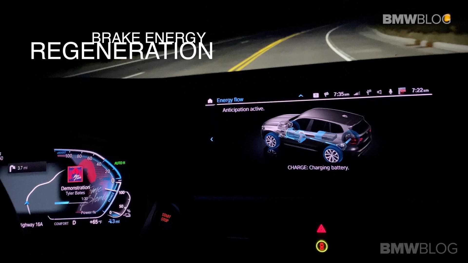 Max E-Drive. You can drive up to about 17 miles pure eclectic motor only. This is powered by a 12 kWh, 34aH battery though only 9 kWh is useable per BMW. The electric motor has 107 hp/77 lb-ft so it’s really meant for efficient style driving. If you have found yourself unwisely pulling out in front of a car on a highway in this mode, no worries. A full smash of the throttle, you will feel a detent on the floor, and the car will override the eclectic only mode and kick on the gas engine to allow full acceleration to get you out of trouble. I use Max E-Drive mode extensively when city driving and use it so much my MPG is rated over 90 mpg. This does require frequent plugging in though if you are going to go over 20 miles of electric driving in a day. If you are still driving after running the battery down the car will engage AutoE Drive.