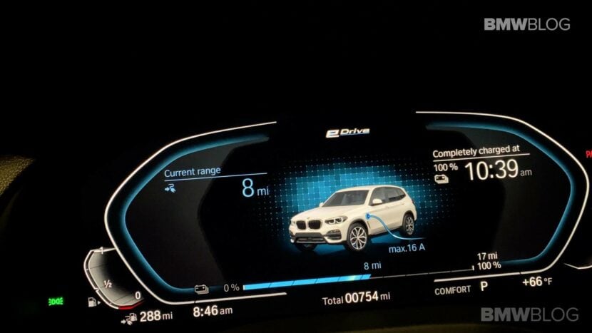 Cosmetically the BMW X3 plug-in hybrid is virtually indistinguishable from the non-hybrid versions. The easiest way to spot it is the charging flap on the front fender on the driver’s side. The biggest changes are noticed from the driver’s seat with different dash displays for all the hybrid modes. BMW does add 440 lbs and downsize the fuel tank from 17.2 to 13.2 gallons to make room for the hybrid hardware and battery. The combined power output of the electric and gasoline motor combine for a total output of 288 hp/310 lb-ft torque and 0-60 comes in 5.9 seconds.