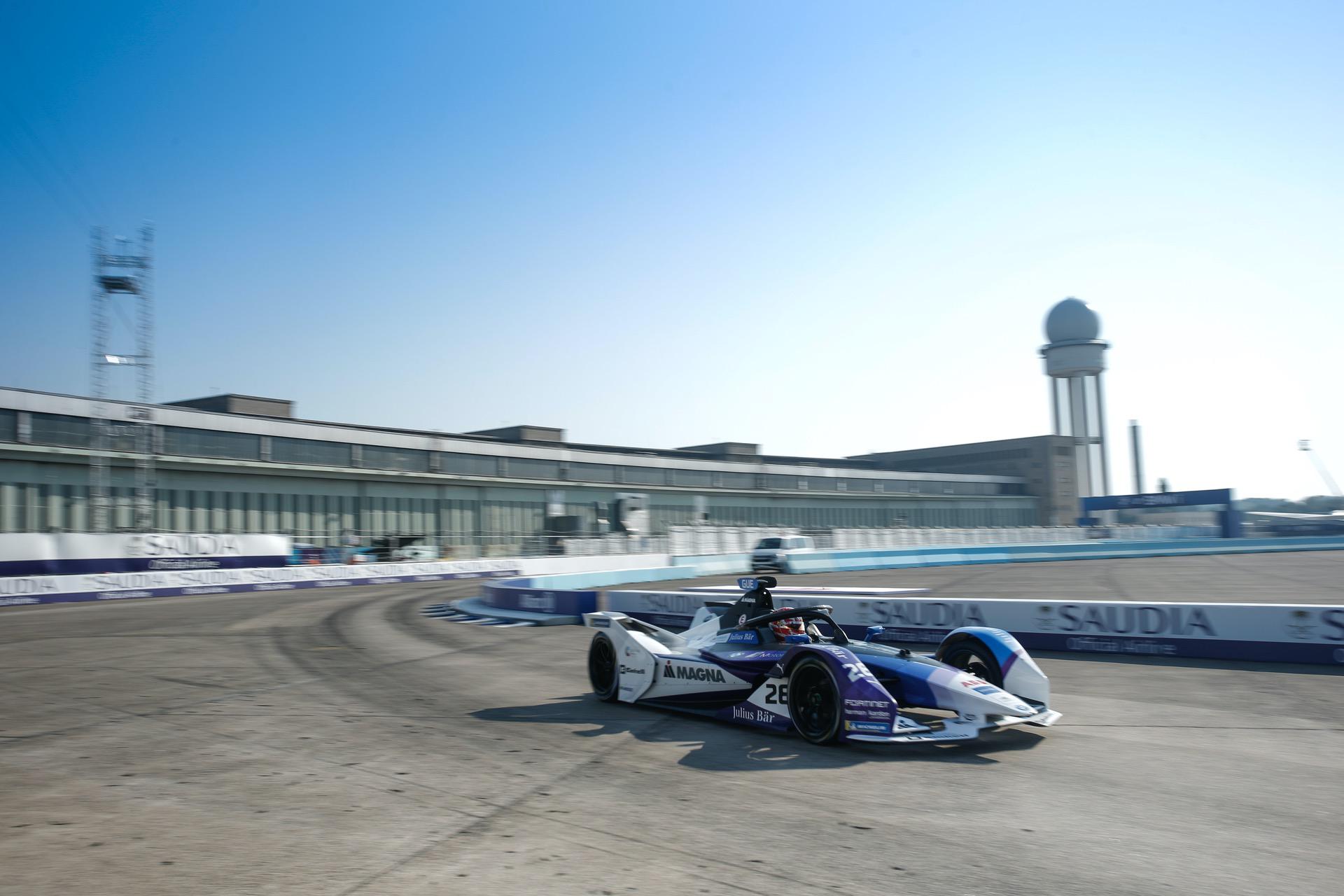 Guenther would line up second on the grid on a warm sunny afternoon in Berlin, on the outside line of the track. It would prove to be a disadvantage, as he made a decent getaway at the start but allowed the third-placed Mahindra of Jerome d’Ambrosio to slip under him at Turn 1, pushing him back to third place. Sound familiar? The same thing happened earlier this season at Santiago, where Guenther qualified second but allowed the third-placed Mahindra, this time driven by Pascal Wehrlein, to go down the inside and pass at Turn 2.