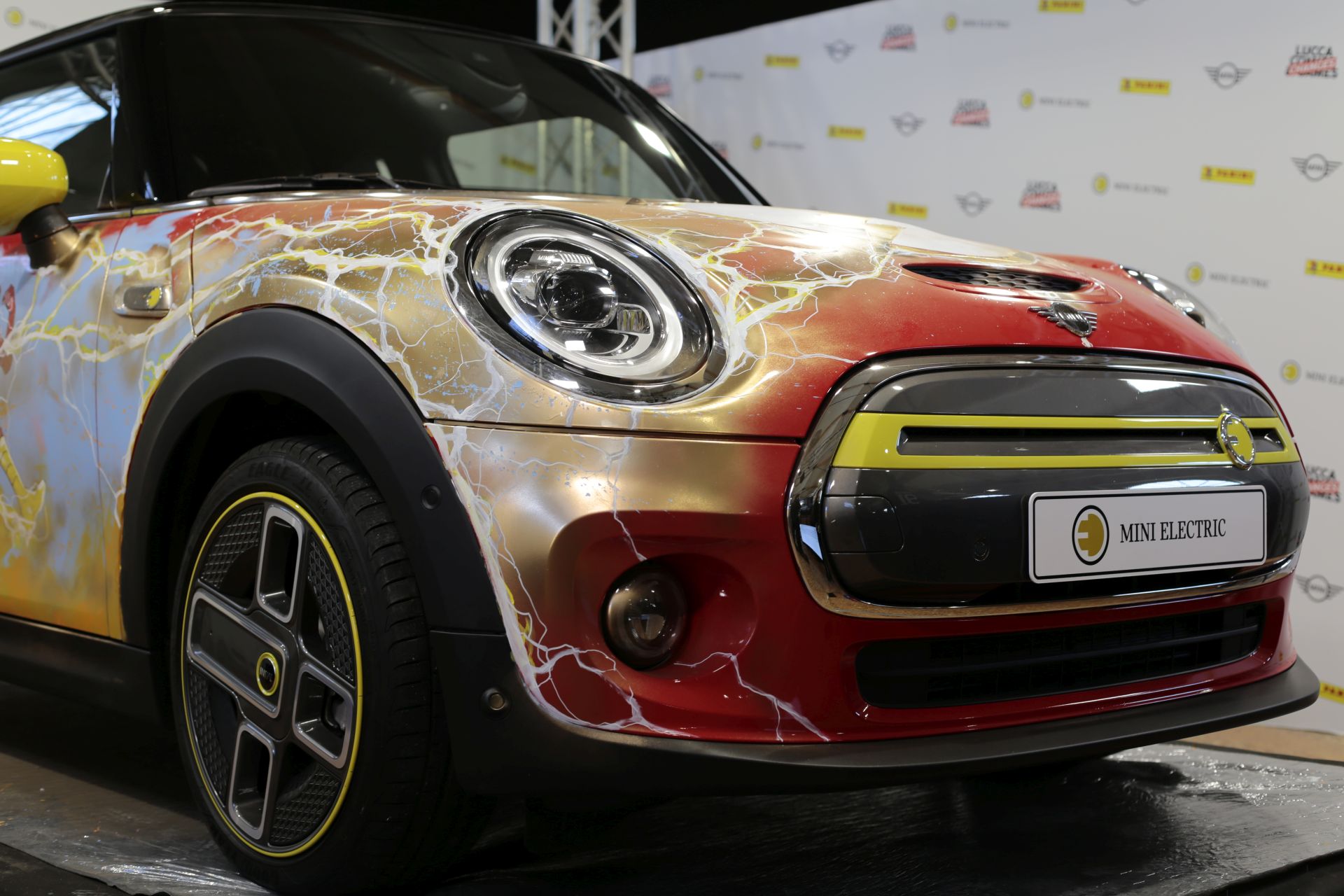 The graphics you see on the car were done by Carmine Di Giandomenico, one of the most well known and active Italian cartoonists all over the world. He is very familiar with the scarlet sprinter, since he was responsible for making more than 34 issues. The work done on the MINI Electric is a reinterpretation of the historical issue 123 cover drawn by Carmine Infantino, a version that is a merger between the classic version of “The Flash” (Jay Garrick), and its modern version (Barry Allen), becoming very popular thanks to different movies and TV series.