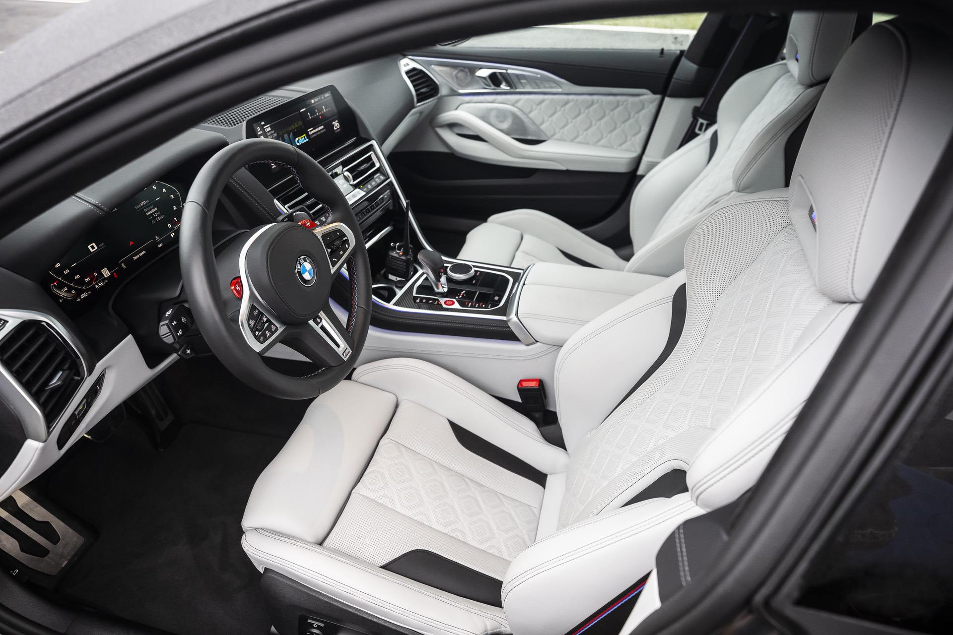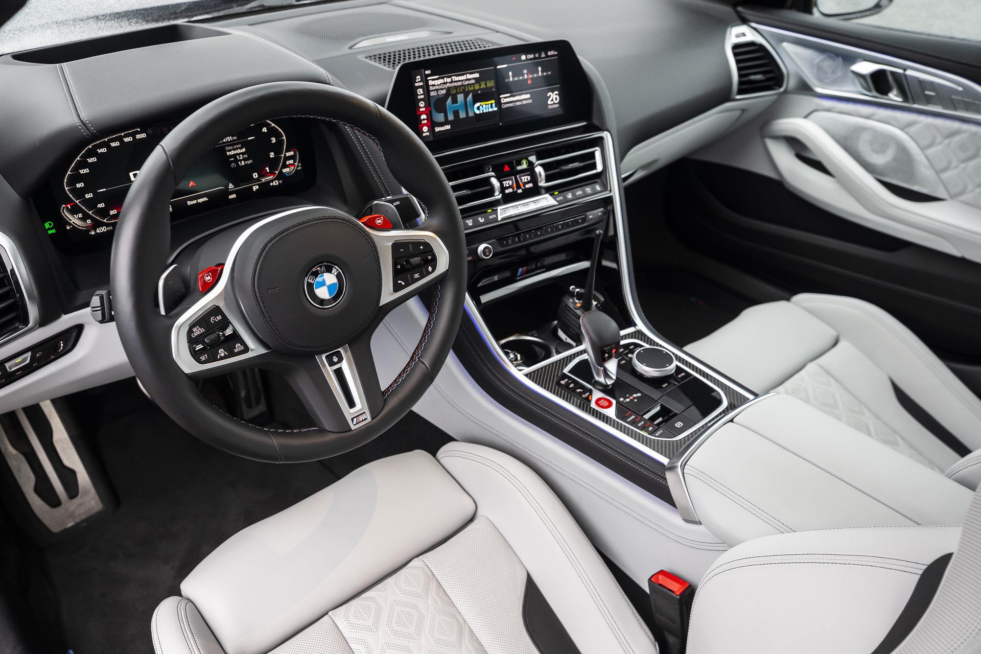 We’ve recently played around with the Individual Visualizer where you can find over 53,000 possible combinations for the BMW M8 Individual (like Urban Green). There are also with 84 exterior paint colors to choose from, including 57 metallic options, 26 Uni paints, and one Frozen hue. This particular model comes inside with the Silverstone Merino upholstery.