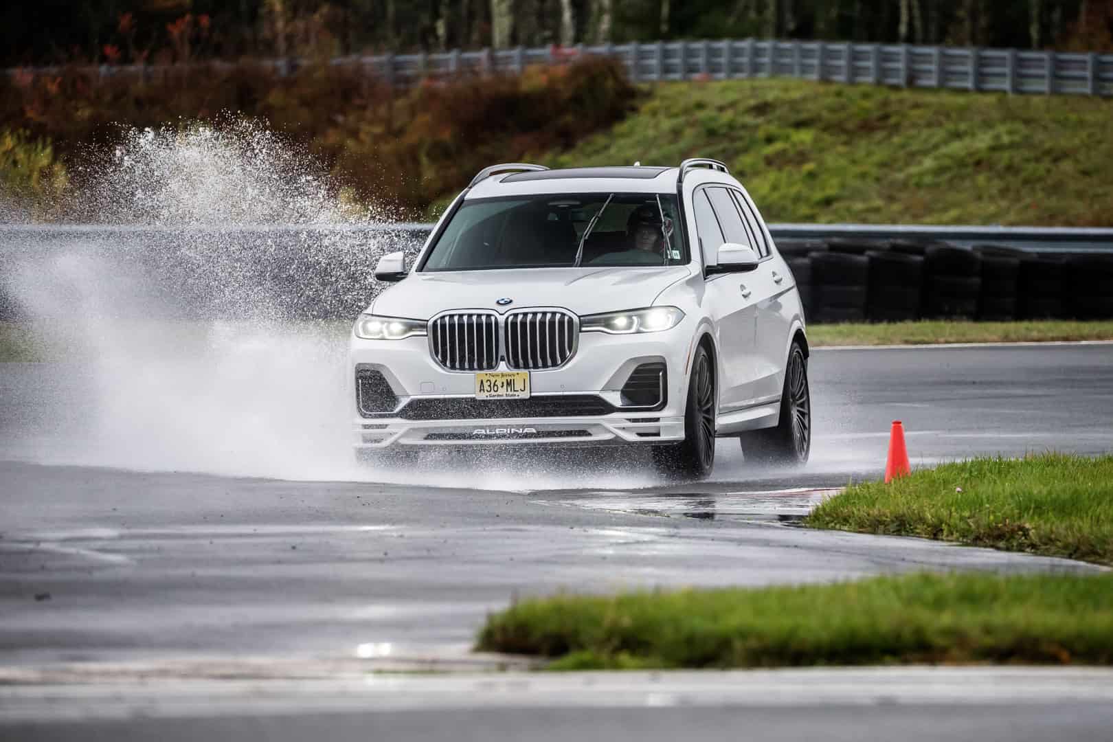 As we made our way onto the track, behind the lead instructor, we had a chance to open up its mighty engine and see what it could do. To say that the ALPINA XB7 is fast for an SUV would be a gross understatement. Stomping the go-pedal in the XB7 felt less like opening the throttle on the engine and more like detonating a fifty-kiloton bomb, wrapped in leather and Alcantara. Forward thrust was gut-churning, yet the quiet, insulated cabin and cushy ride completely belied the acceleration.