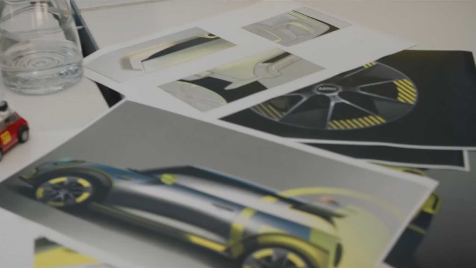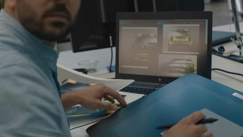 During a short video about BMW’s modern design language for cars like the iX electric SUV, there’s a scene in which the filmmakers say that BMW keeps hiding things from them. At that point, we see a designer make a fake attempt to hide the sketches on his desk. Those sketches even get a close up, despite BMW making this seem like an accident. In them, we see what is clearly a MINI Electric GP, as it has all of the same aerodynamics as the GP, just with bright yellow accents and aerodynamic wheels from the MINI Cooper SE.