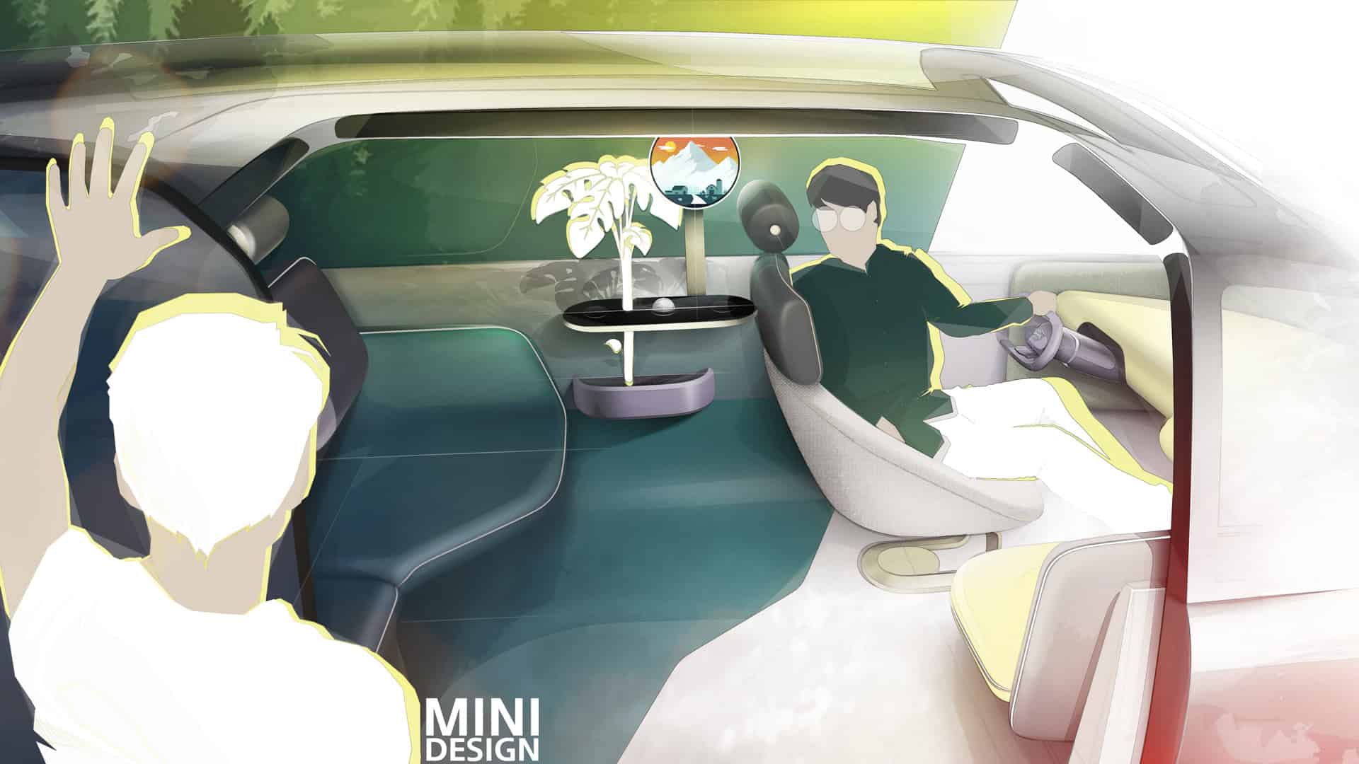 The Mini Urbanaut ditches the brand’s typical go-kart racing shoes and replaces them with hemp sandals. There are three different “Moments” that the car provides; “Chill”, “Wanderlust”, and “Vibe.” These moments are essentially comprehensive driving modes that are designed to put passengers into different moods.