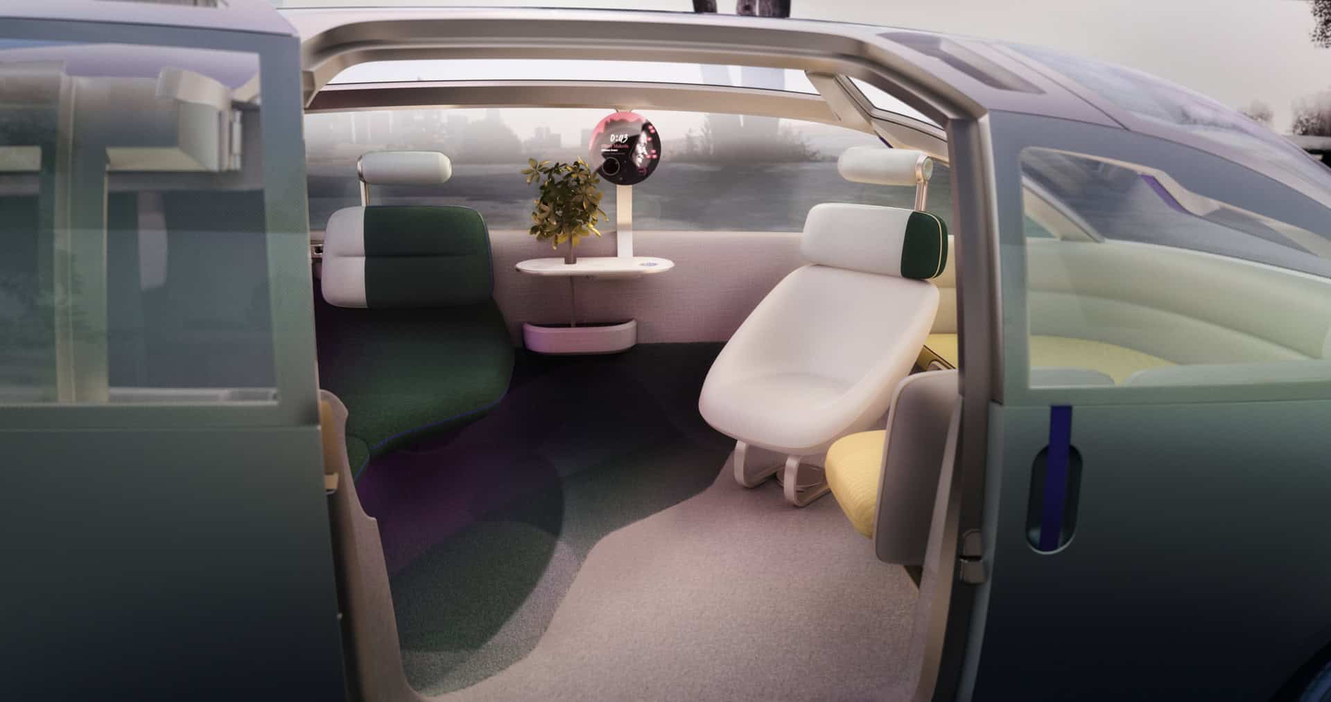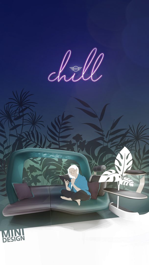 In “Chill”, the car becomes a relaxing pod, so that its driver can work peacefully or just sit and have a cup of kombucha tea on the way to work, as the car drives itself entirely autonomously. “Vibe” is designed to focus on passengers and letting them hang out with each other in the living room-like environment, presumably while playing banjos. “Wanderlust” mode is the only mode in which the MINI Urbanaut is actually driven by the driver, though it can still use automated driver aids to assist the driver.