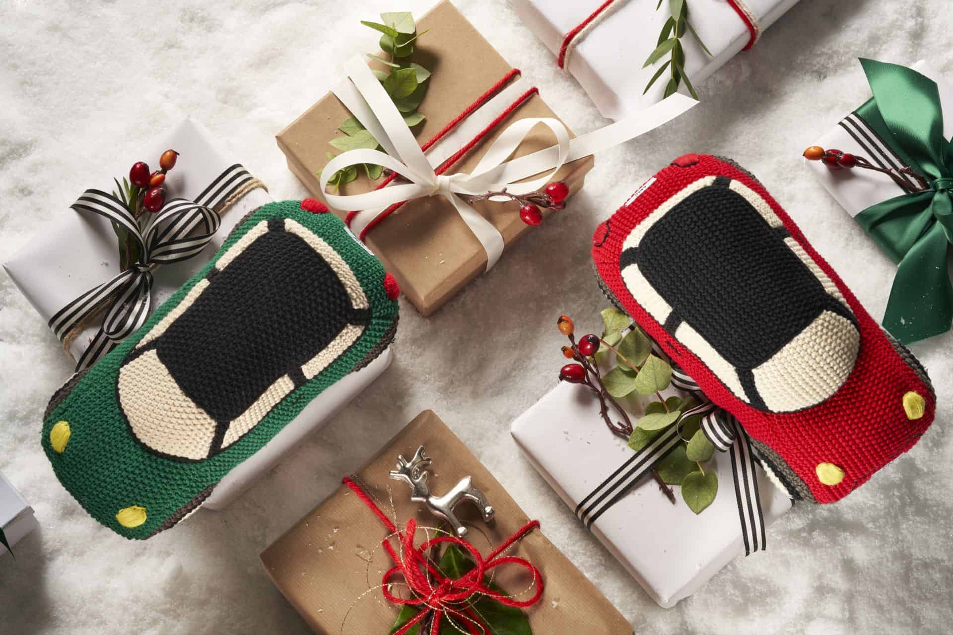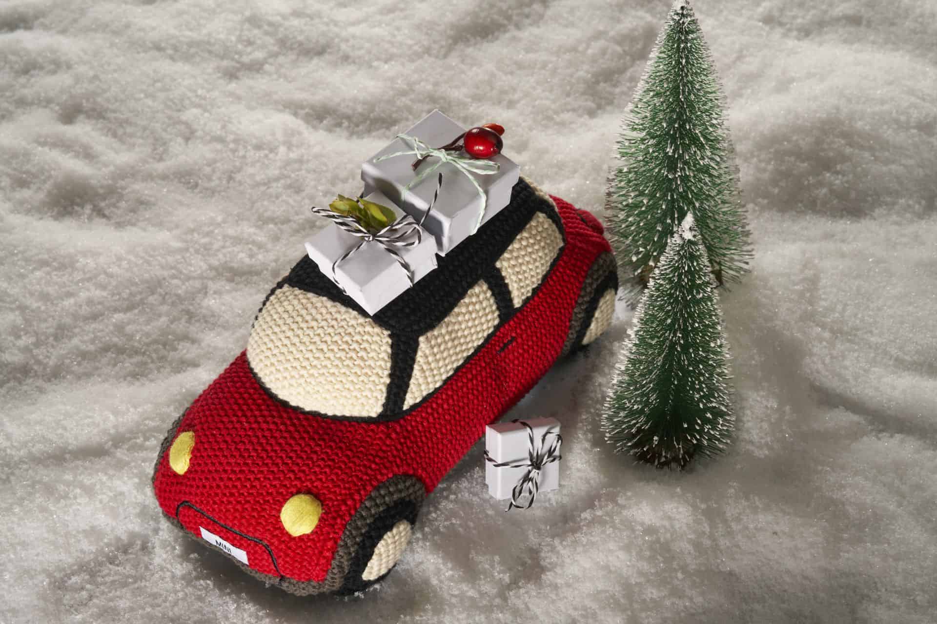 The MINI Knitted Car is another option. With its bodywork in Chili Red, a black roof and yellow headlights, it is characterized by distinctive MINI design. The MINI Bulldog is an equally stylish and similarly cuddly playmate for the little ones. Grey corduroy with white front, movable legs and a red neckerchief with black MINI Wing logo give the MINI mascot a lot of charm.