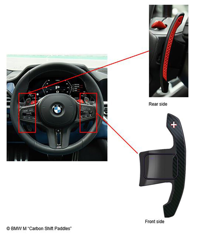 When BMW unveiled the new M3 and M4, the steering also featured a new set of paddles which seem to be the ones engineered by INEOS. The carbon fiber paddles come with a minus sign on the left paddle and plus on the right, indicating the downshift and upshift sequence. Clearly, those are paired with an automatic transmission, in the case of the M3/M4, the ZF eight-speed. The interesting tidbit is whether BMW will offer those new paddles as an aftermarket accessory for other models as well. More on that soon.