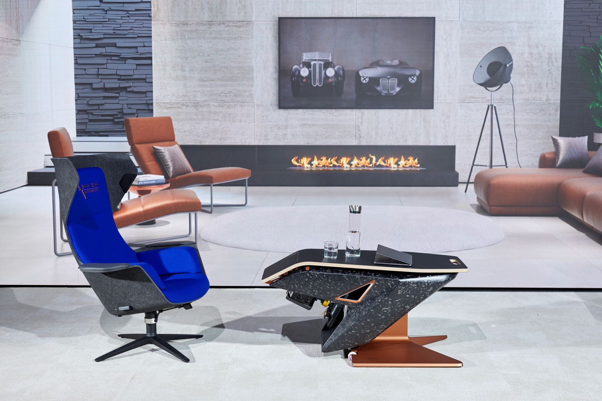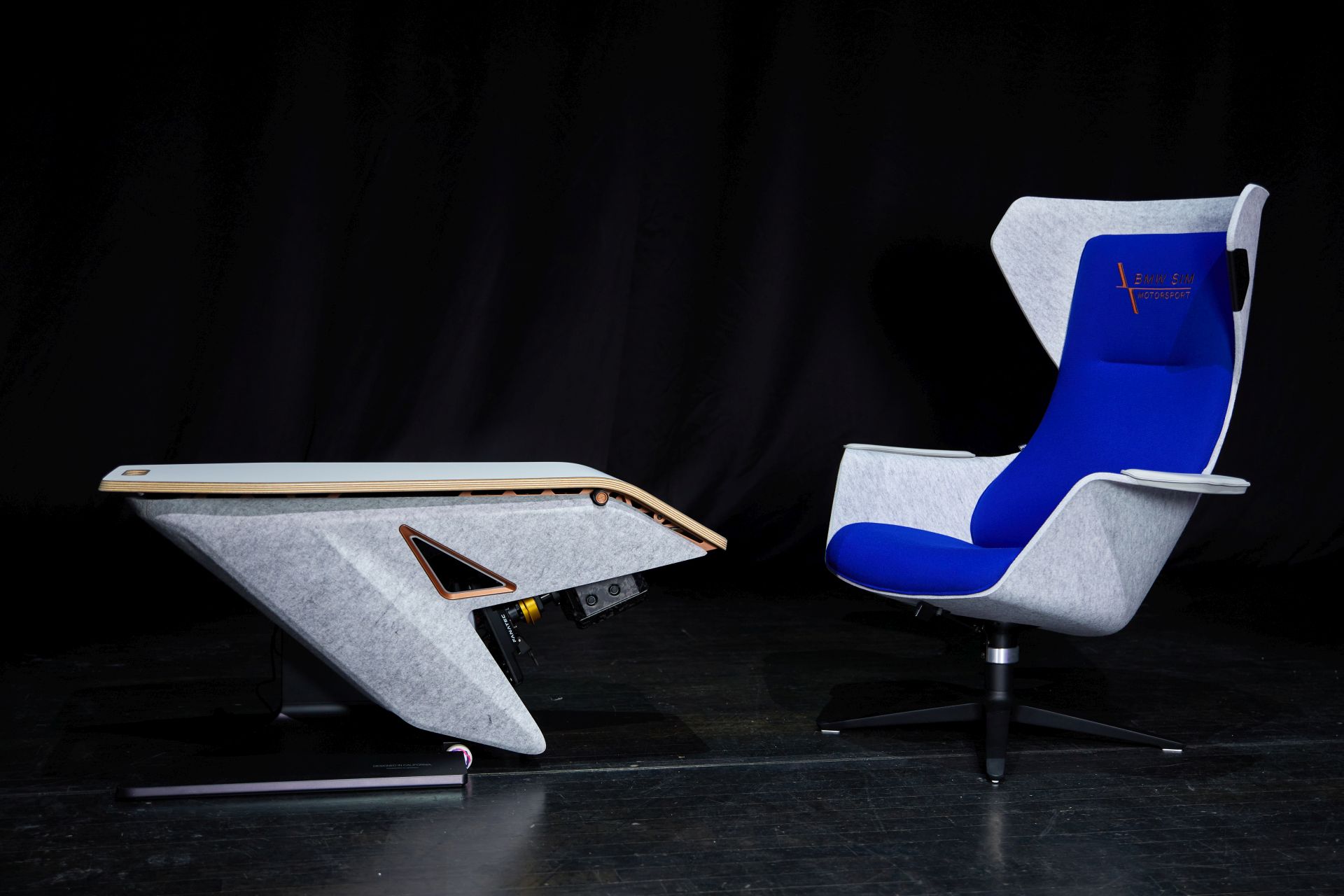 The concept study is called “Fusion SL” and it truly is a unique combination of sim racing rig and lounge furniture. The idea was to develop a piece of furniture that would save space and could be aesthetically integrated into a modern living environment. It can be converted into a rig in just a few simple steps, but is otherwise folded down to serve as a desk, coffee table or seat, thus making “boost” and “ease” concepts that can be experienced not only in the car, but also in the living room.