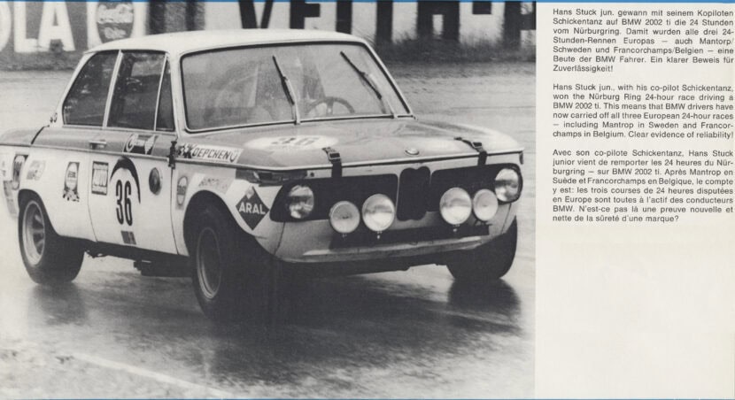 Back then, the Green Hell didn’t even earn its nickname yet, being described as a ‘testing and experimentation’ circuit a long, long time ago. Even from the get go BMW and the Nordschleife had a very close relationship. Back in the 1960s a young star was rising in the shadow of his father, Hans Stuck. The senior had already risen to legendary status, having won countless races in the 1920s and 1930s. Following his success, his young son decided to try and show him off and boy, was he off to a good start in 1970.