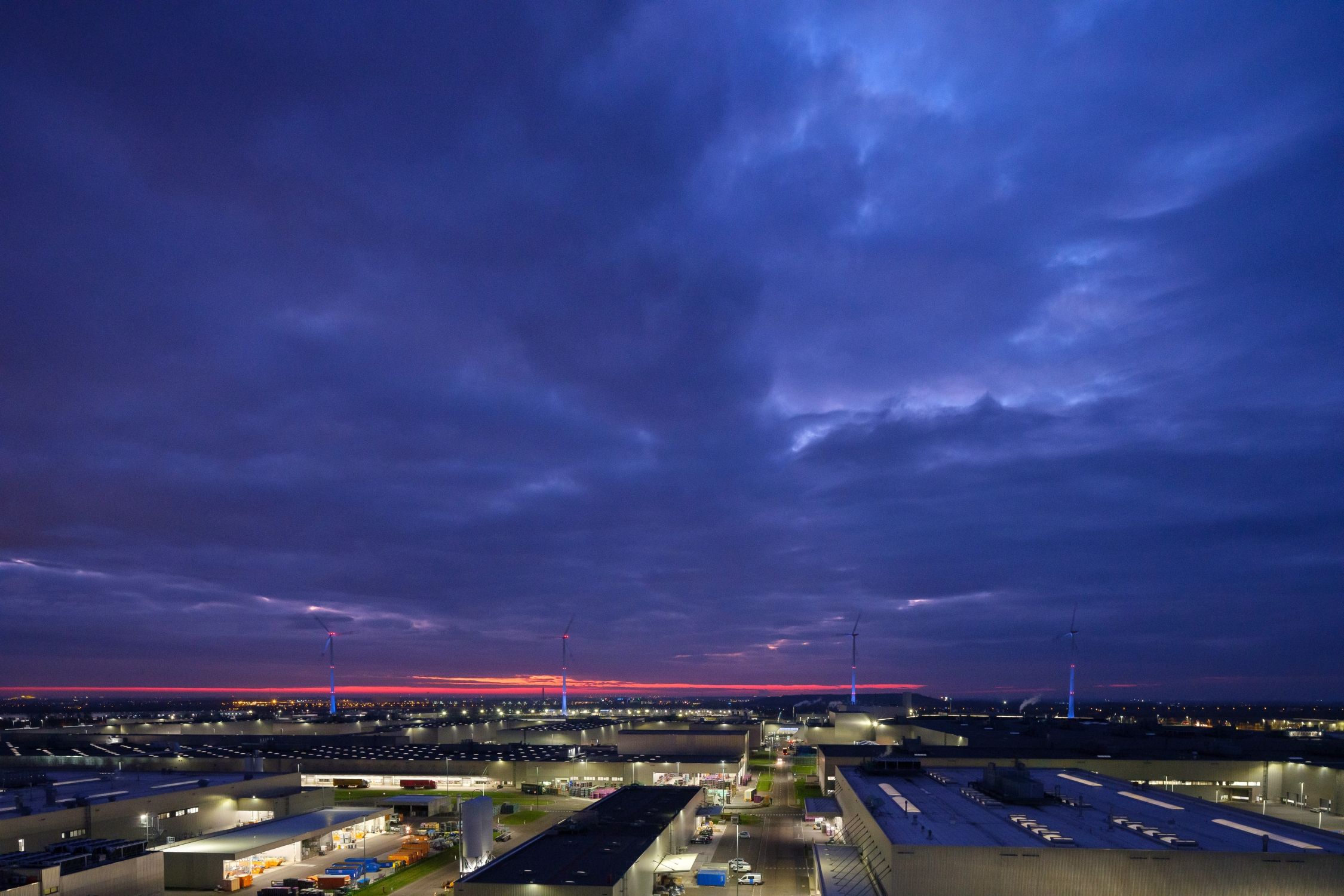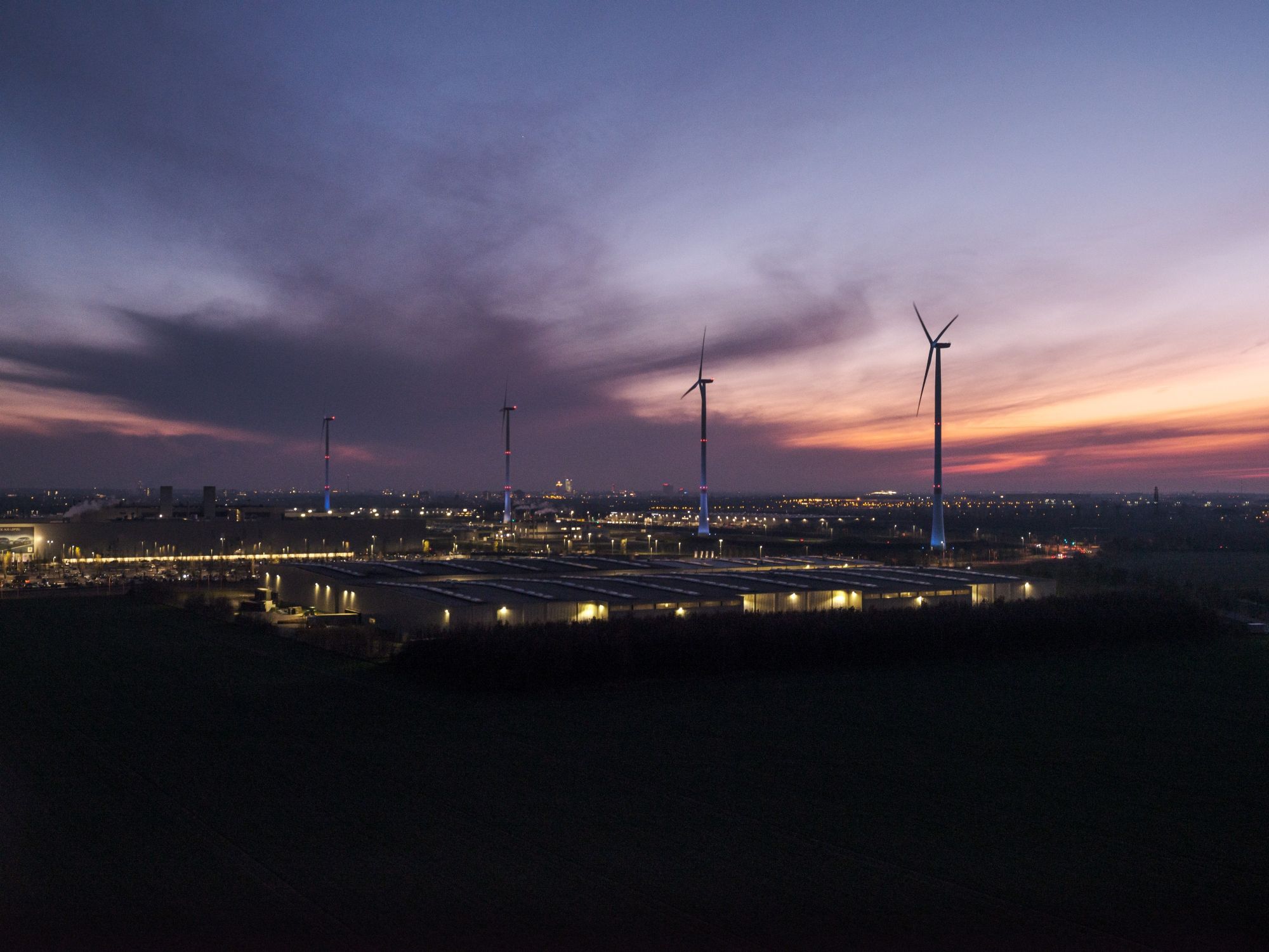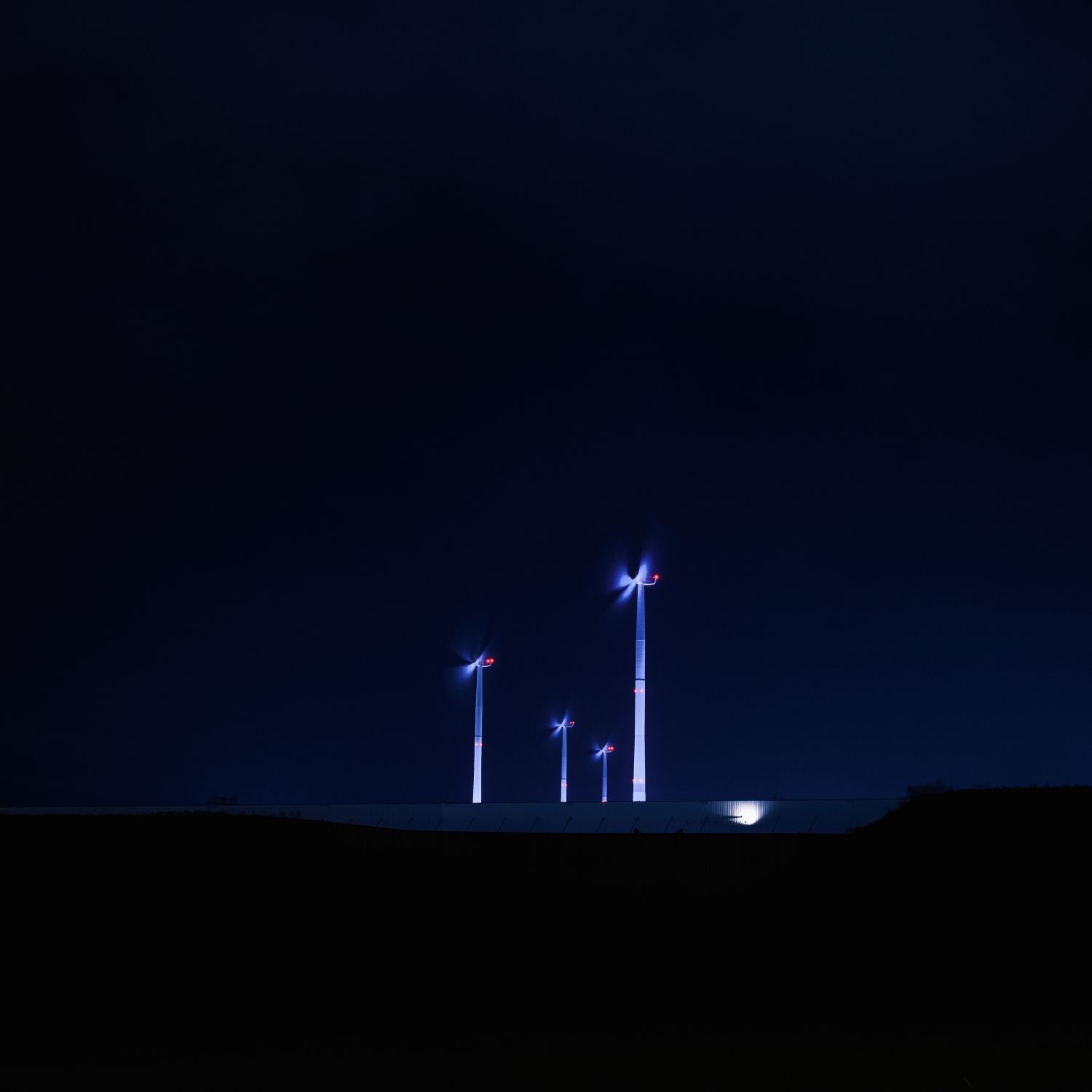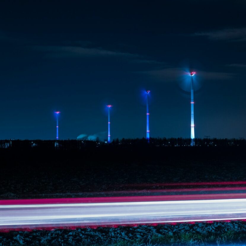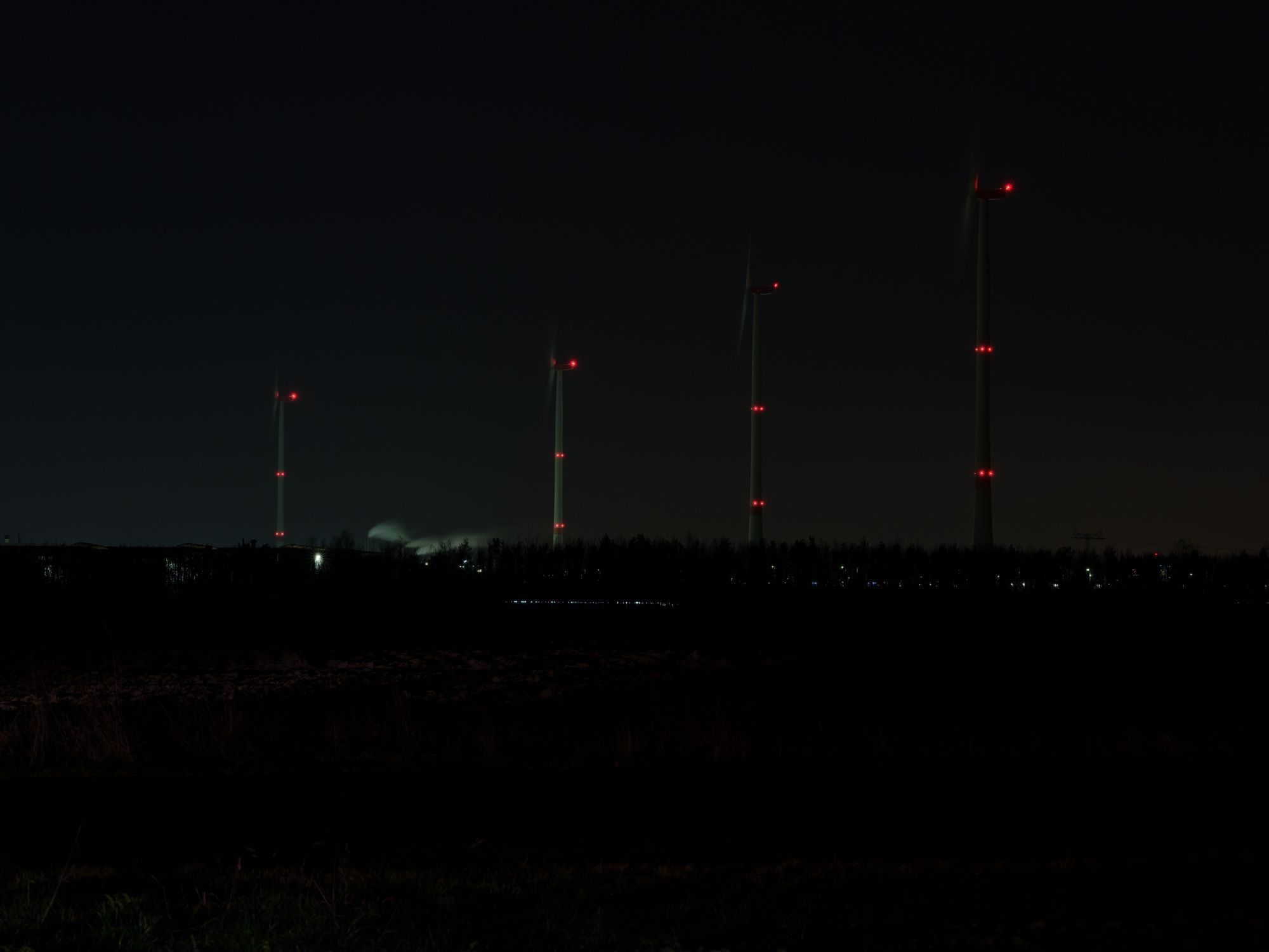 Each Advent Sunday, one more of the turbines is lit up in bright white rather than the usual blue, until the Fourth Sunday of Advent, when all of them will be aglow. Each ‘candle’ is evenly illuminated by the eight powerful LED lights that surround it and are powered by electricity from the turbines themselves. This is basically their second job now, as they did so well on providing power for the Leipzig plant.