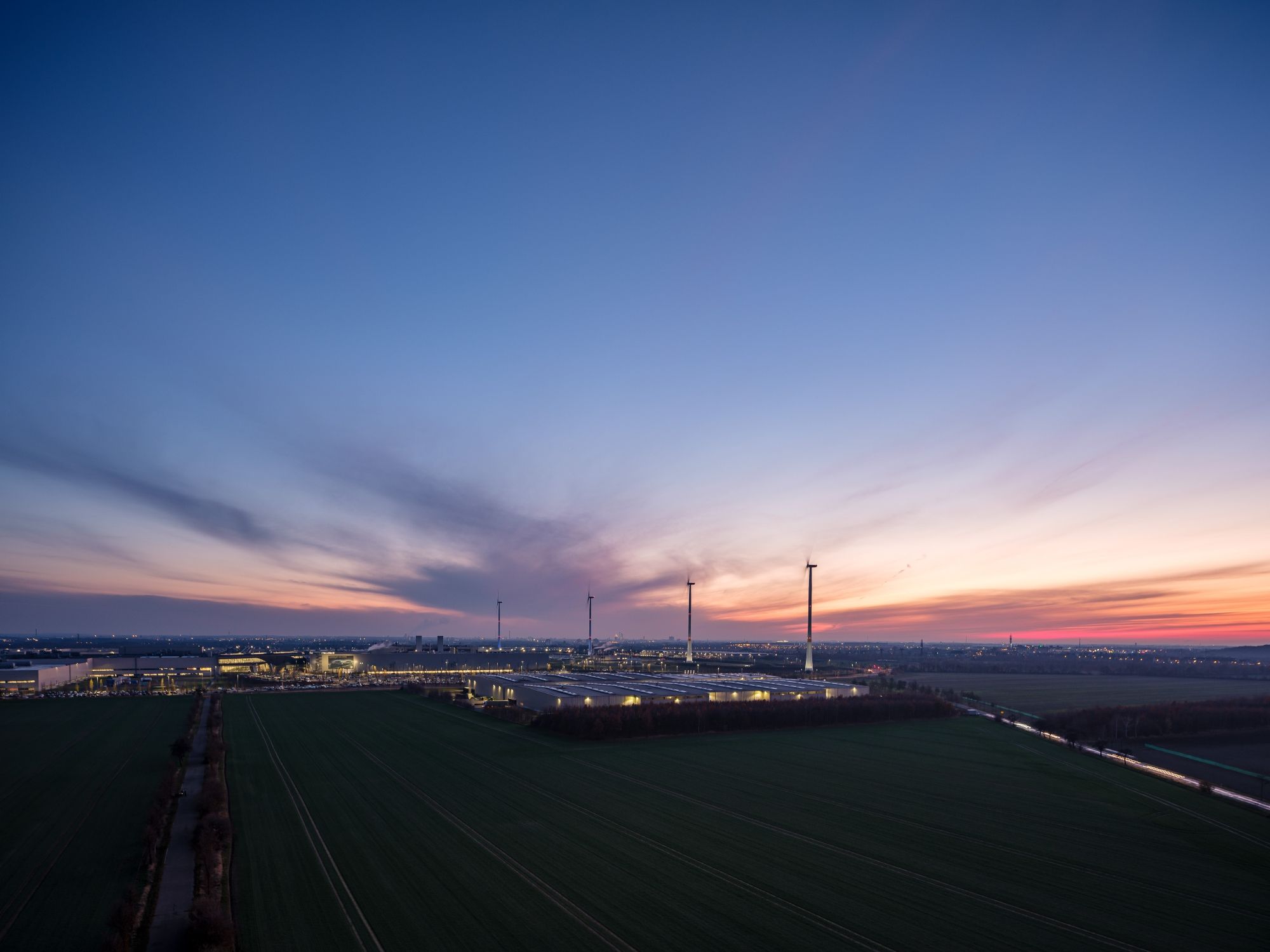 At 190 meters high and with nominal power of 2.5 megawatts each, the turbines generated a combined total of 26.4 gigawatt hours of electricity purely from wind in 2019 – enough to power more than 5,000 three-person households for a year. The wind turbines provide about one fifth of all the electricity used at BMW Group Plant Leipzig. When production is not running, they power other areas of the facility and ensure the base load is covered.