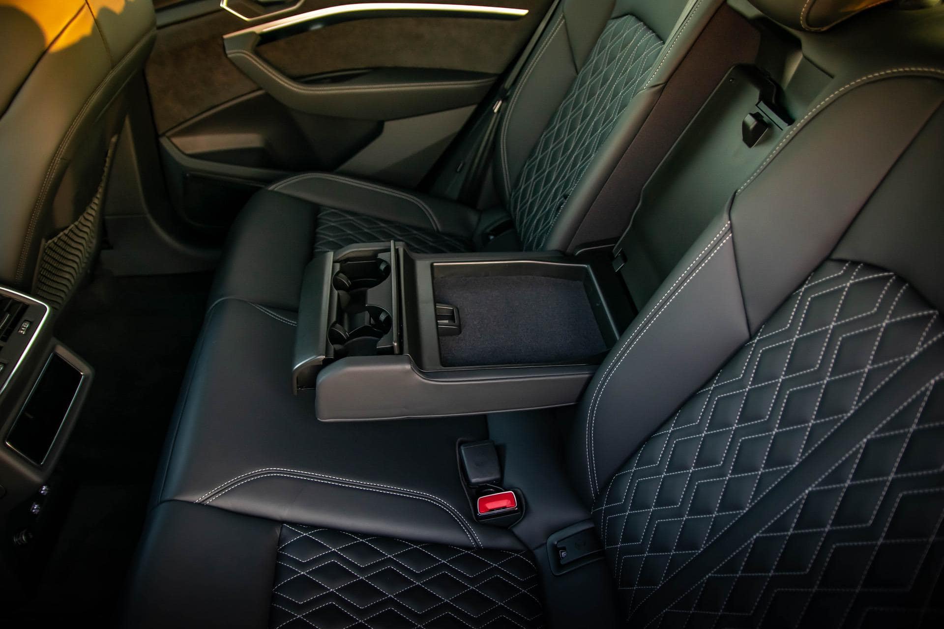 The seats are pretty comfy though and could be considered a tad on the stiff side but our tester was wearing the S-Line ‘armchairs’ up front. The rear bench offers a surprising amount of room considering the roofline. Adults can fit back there, even if they are 6-ft tall such as myself. Audi says the e-Tron Sportback can accommodate three adults in the back with plenty of headroom and legroom. But in my experience, the the HVAC controls will leave a serious dent on the shins of anyone daring to occupy the middle seat.