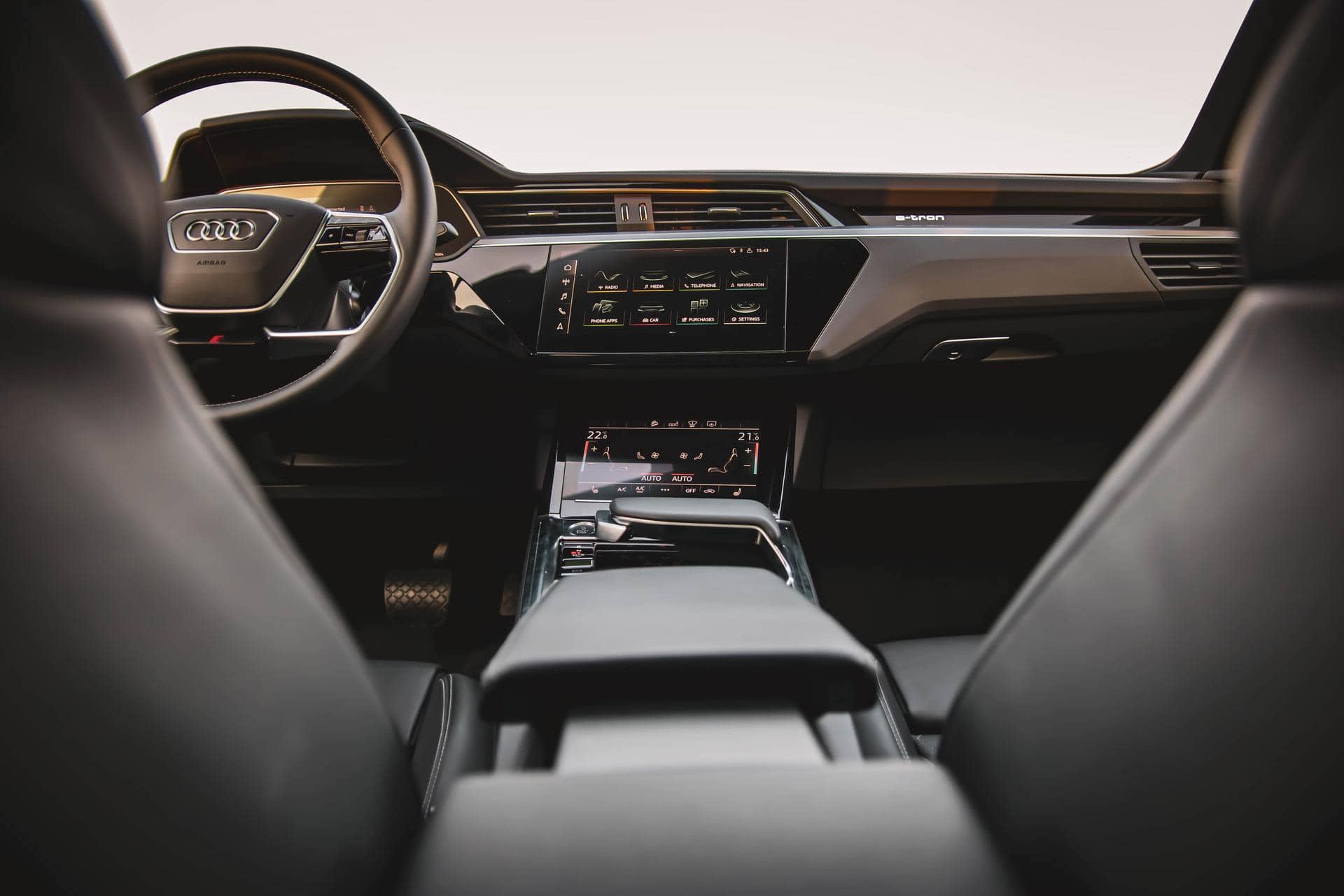 All that power is sent to both axles, meaning this car is an all-wheel drive model but without a transmission tunnel in the middle, which helps with the level floor in the back. Unlike the Taycan, which is made by brother company, Porsche, the e-Tron Sportback uses a single-speed gearbox that allows it to use a single axle at a time, to be even more efficient. In everyday driving, around town, for example, you’ll end up using the rear axle alone, which is a pretty neat trick.