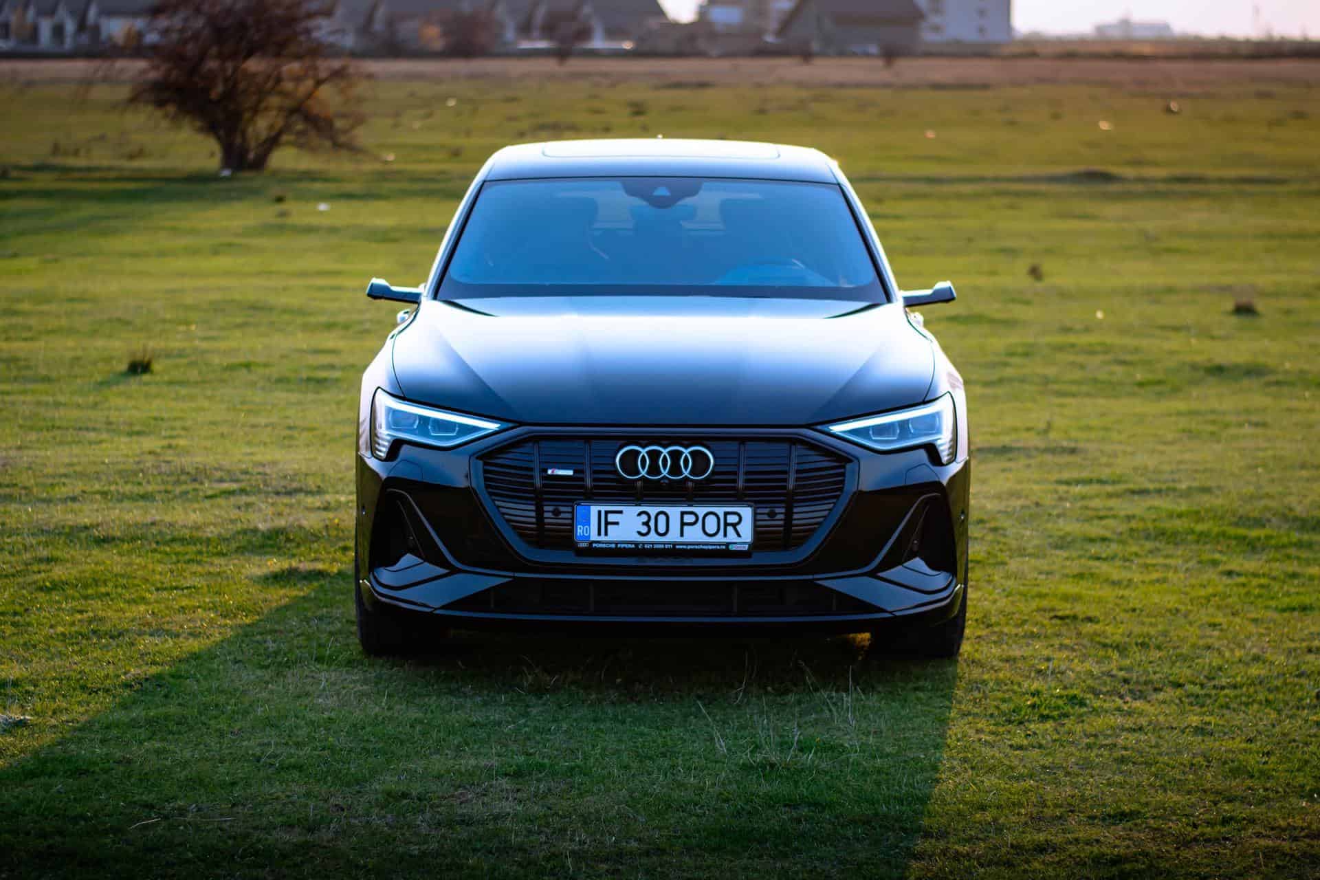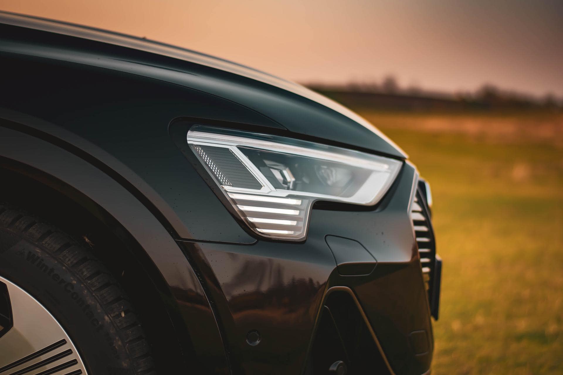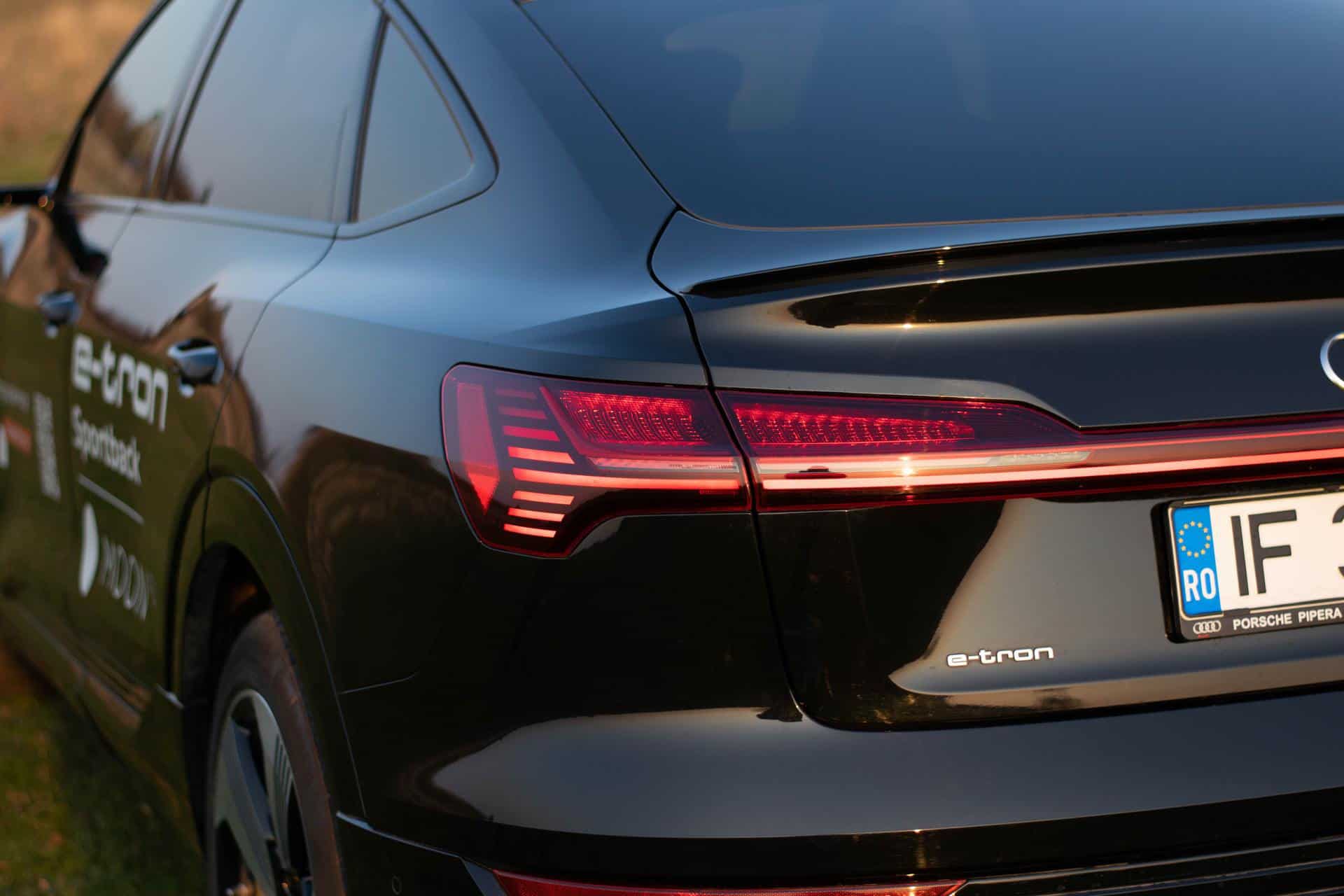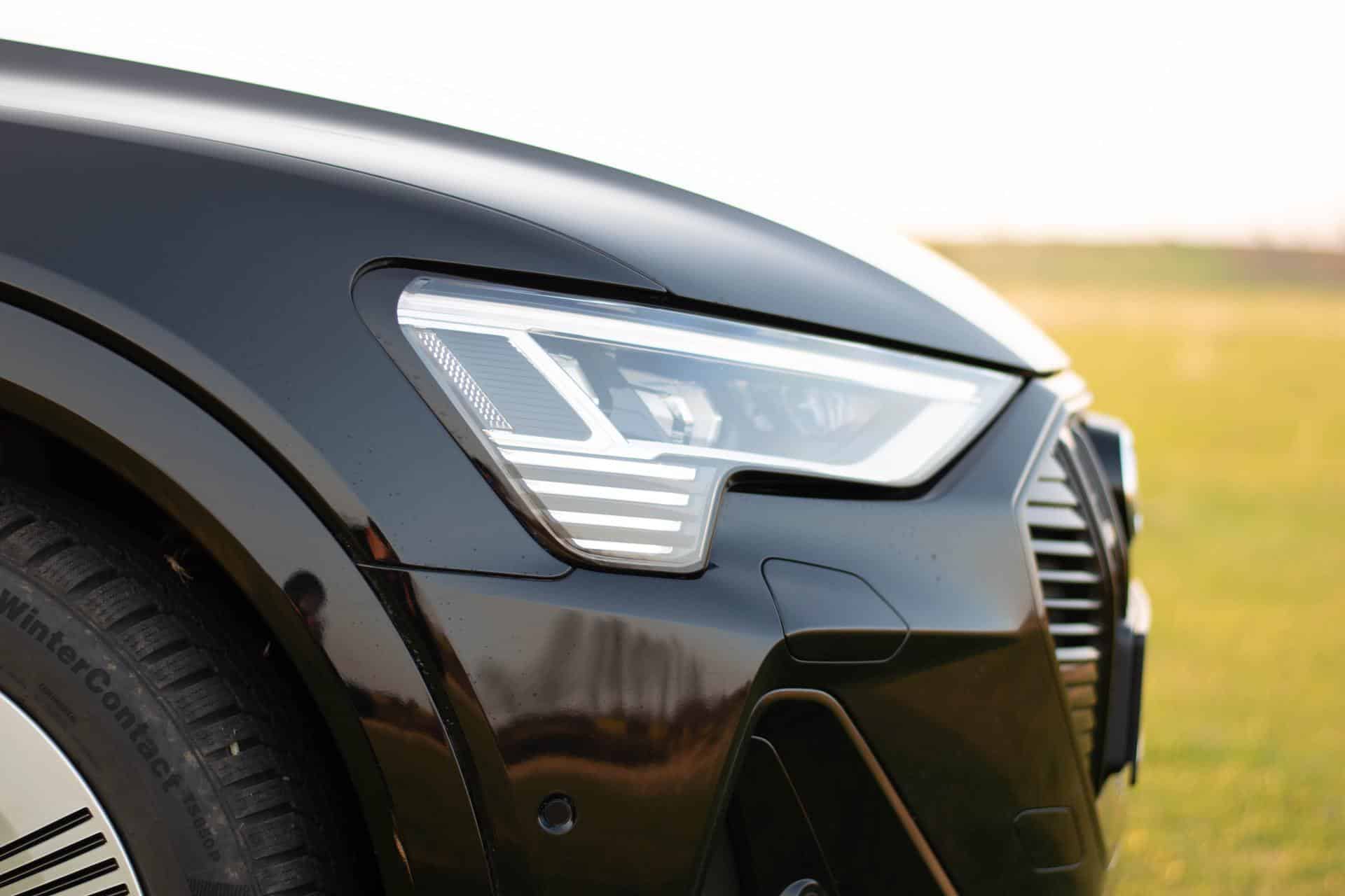 Up front, there are barely any noticeable differences compared to the regular e-Tron. The bumper is slightly more aggressive as are the headlights, but you’ll need a very keen eye to make those details out. What I will say, though, is that I love the LED daytime running lights on this car and their shape in particular. They make it seem like you might just cut yourself if you dare come too close. The cold light from those details in the headlamps combined with the black-on-black finish of our tester created quite a contrast from afar and up close.