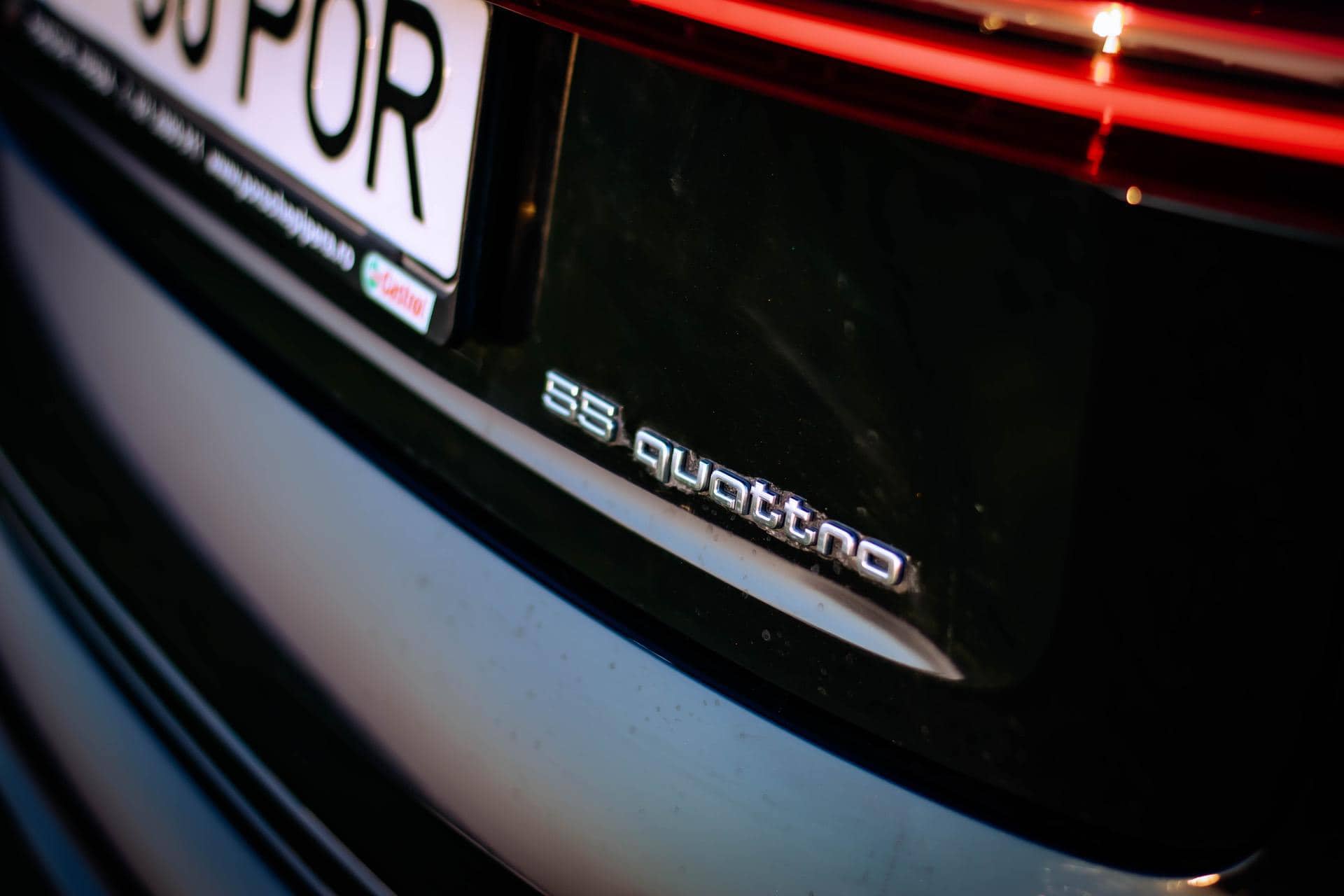 That extra weight comes, to nobody’s surprise, from the huge battery pack located in between the axles. The LG Chem-supplied batteries can hold up to 95 kWh with a usable capacity of 86.5 kWh, one of the biggest I’ve ever tested. On the aforementioned axles, since this was a 55 quattro model, you get two asynchronous electric motors that can deliver up to 408 PS and 664 Nm of torque. It’s important to note that those figures are available only in Sport mode, the car using just 360 PS whenever you’re just cruising around and even less when only the rear motor is used. That’s all done in order to make the car a bit more efficient.