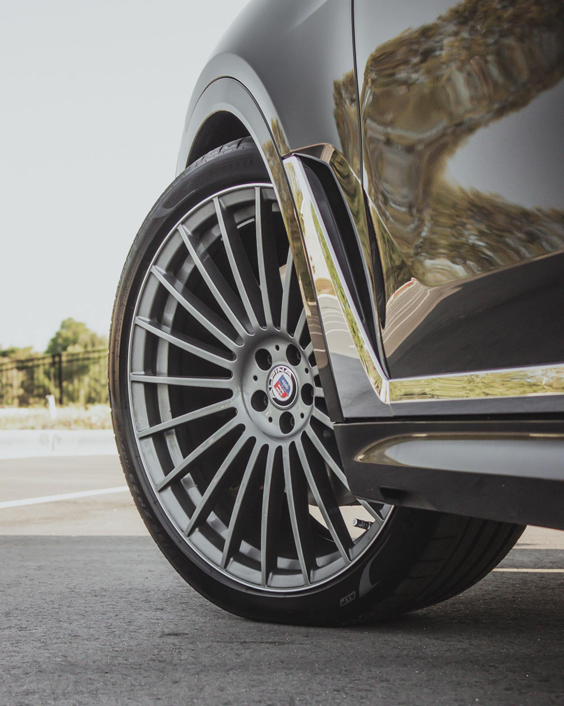 Powering the ALPINA XB7 is the 4.4 liter BiTurbo engine from the B7 limousine. So it gets the same tuning treatment; bigger twin-scroll turbochargers, upgraded intake and exhaust manifolds, additional water, transmission and oil coolers and a new stainless steel exhaust system. All of that combines to make 612 horsepower and 590 lb-ft of torque, making it the most powerful ALPINA to date, even if it’s just by a few ponies. According to BMW and ALPINA, the XB7 is capable of 0-60 mph in 4.0 seconds flat and can nail the quarter-mile in just 12.6 seconds. The ALPINA XB7 is capable of going past an electronically-limited 180 mph.