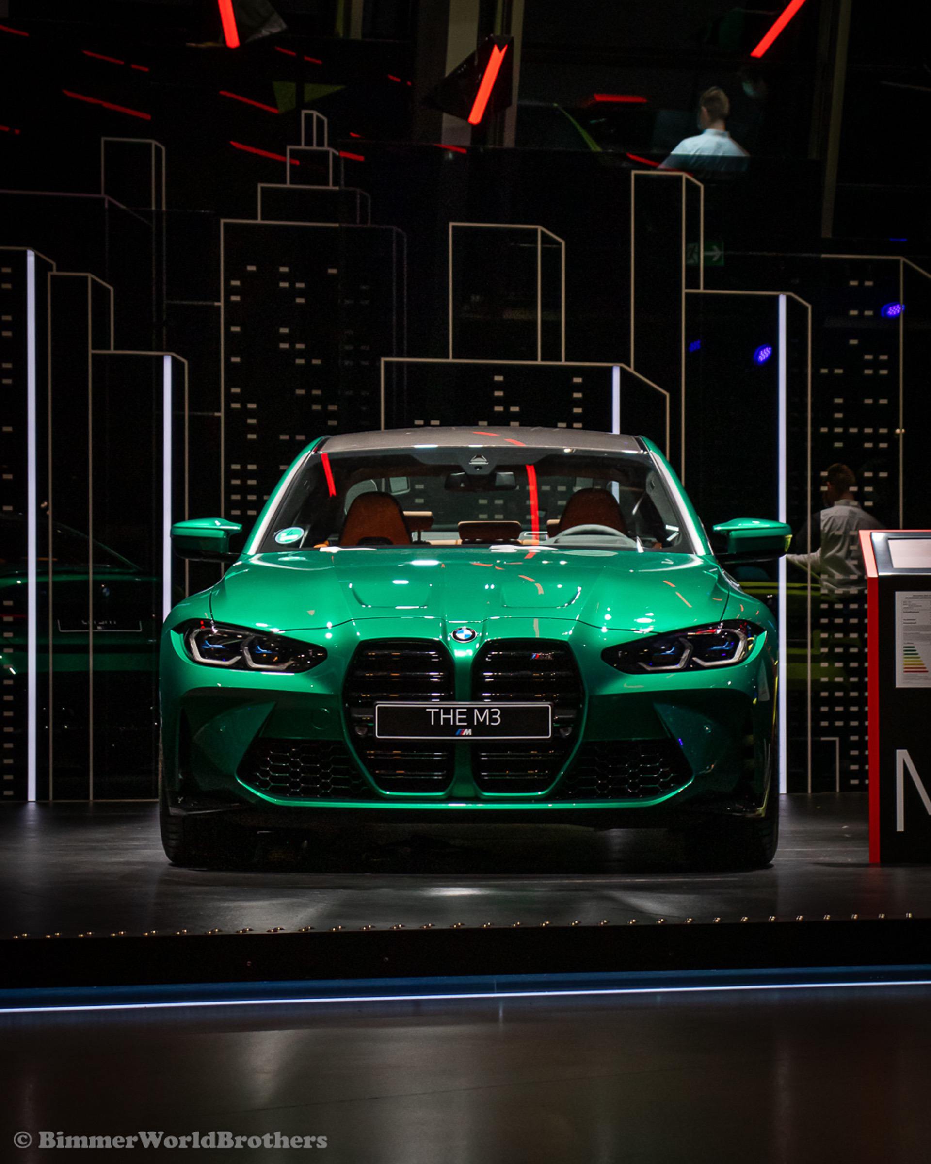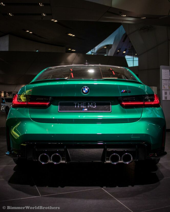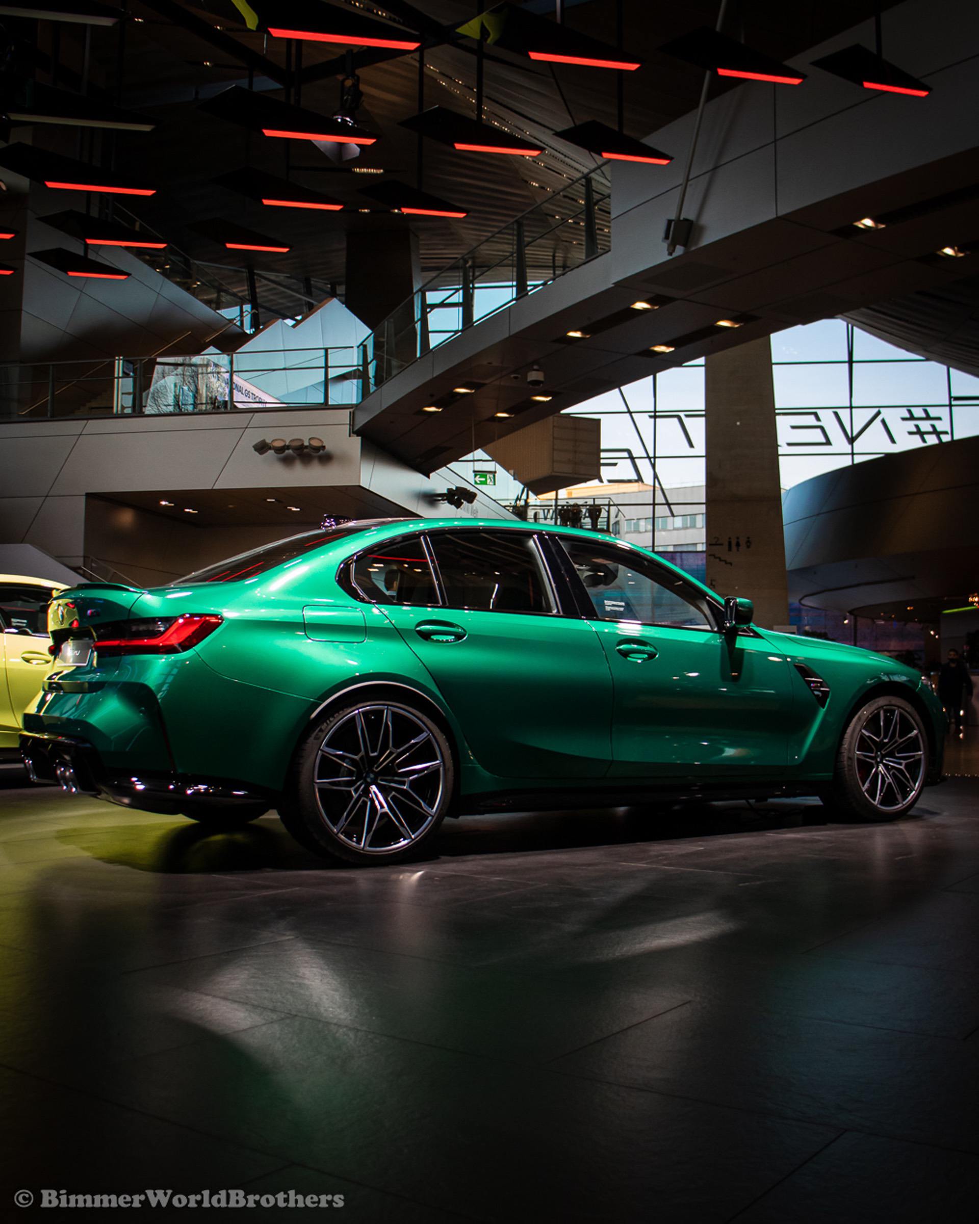 Courtesy of the fellows at @bimmerworldbrothers, we bring to you some new photos of the 2021 BMW M3. The sports sedan is now displayed at the BMW Welt in Munich, featuring the Isle of Man Green launch color. The flashy green is just one of the many paint options of the new G80 M3 and G82 M4. Before even getting into special Individual colors, the G80 BMW M3 offers several interesting and vibrant colors that will make owners’ cars stand out from the seemingly endless sea of black, white and grey sports cars.