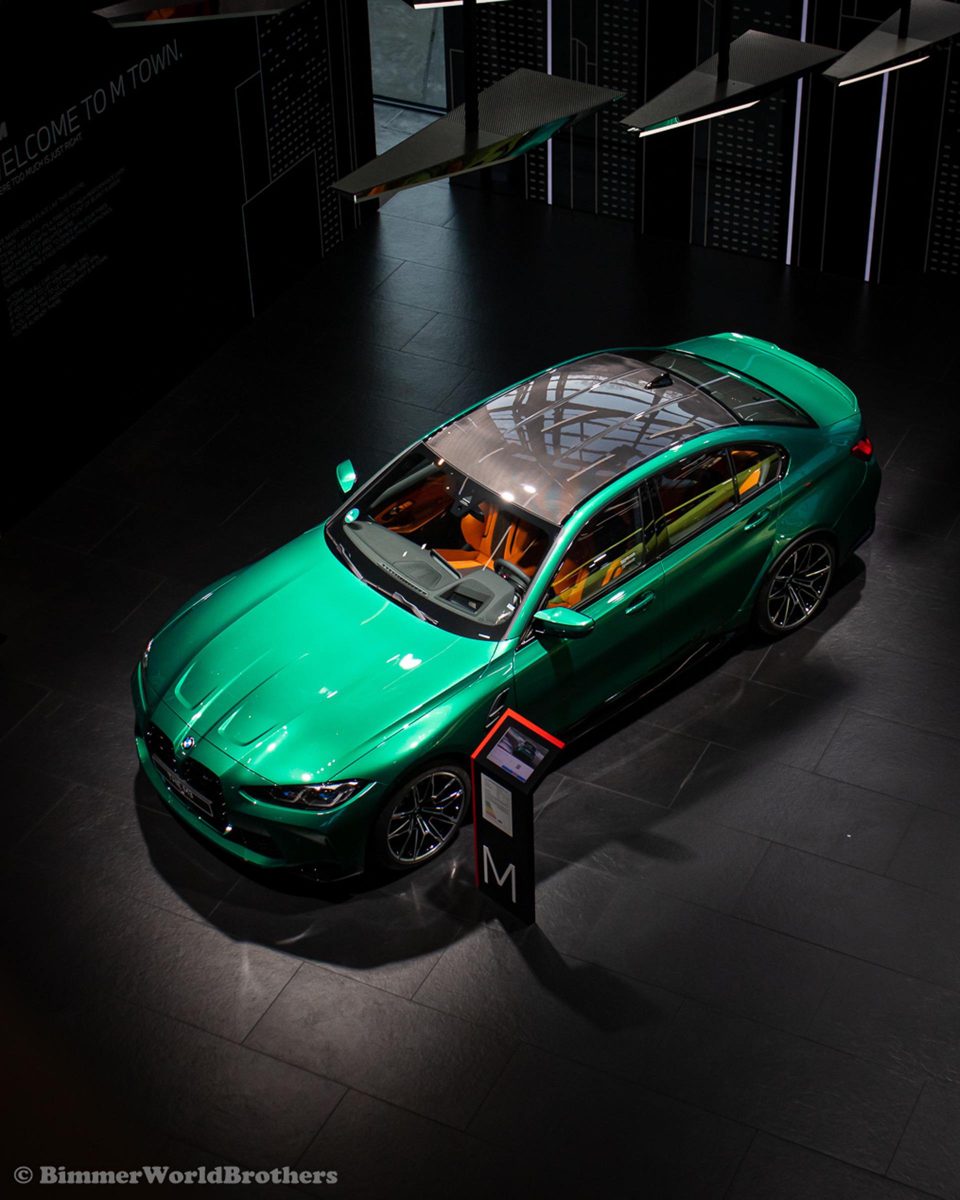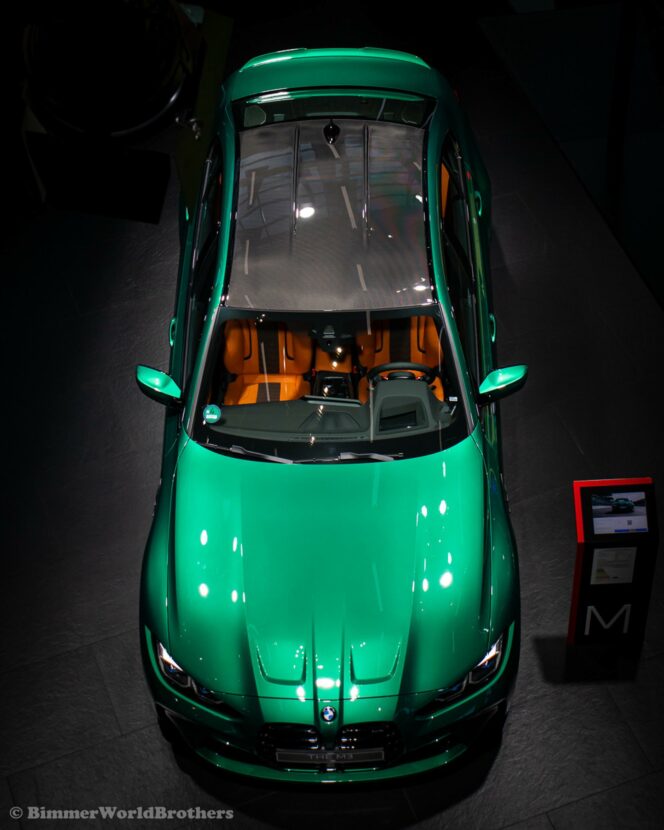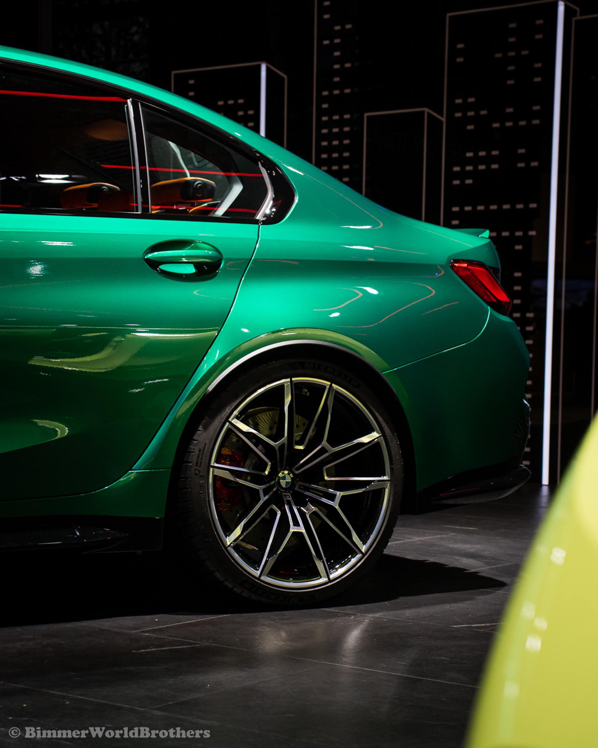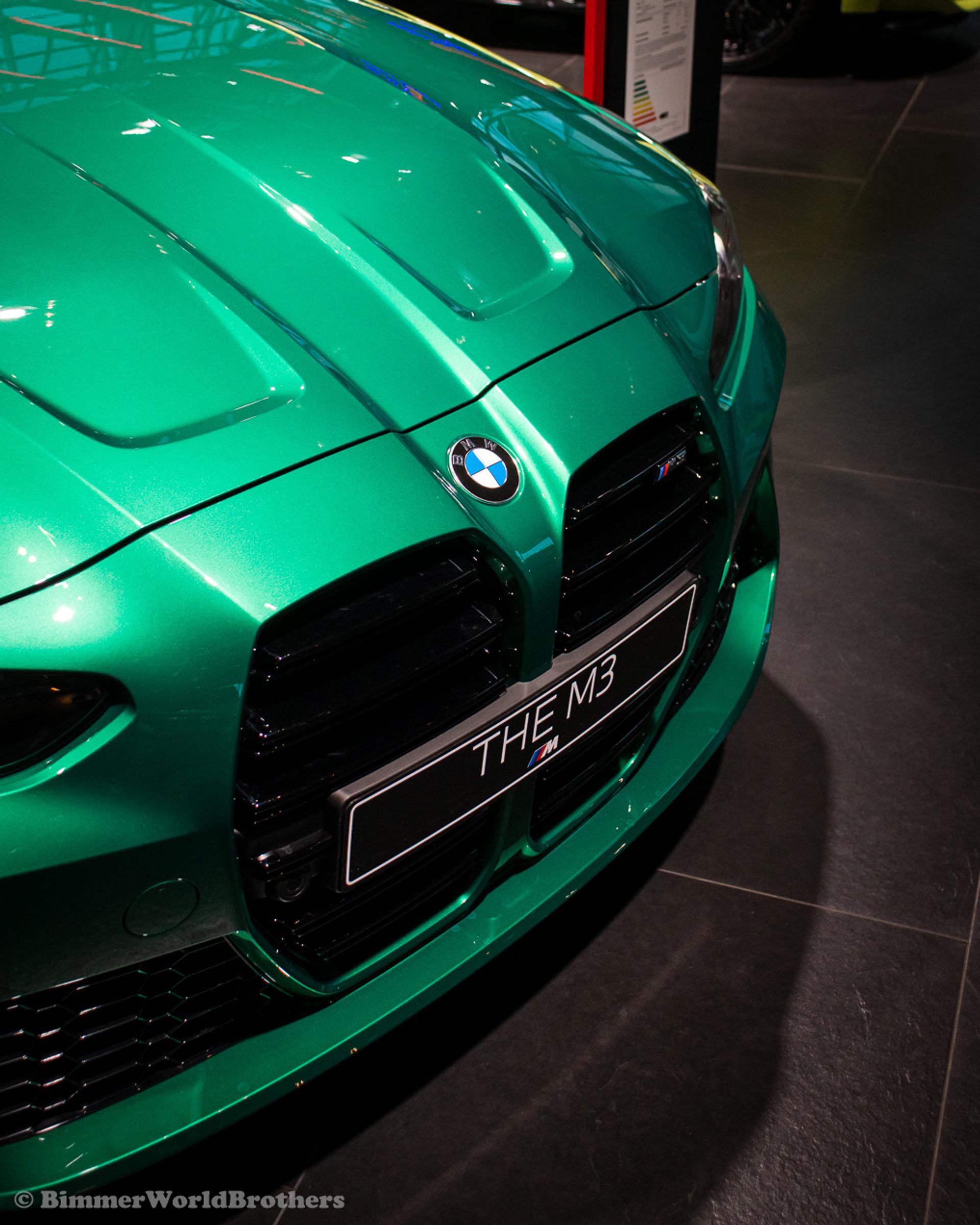Courtesy of the fellows at @bimmerworldbrothers, we bring to you some new photos of the 2021 BMW M3. The sports sedan is now displayed at the BMW Welt in Munich, featuring the Isle of Man Green launch color. The flashy green is just one of the many paint options of the new G80 M3 and G82 M4. Before even getting into special Individual colors, the G80 BMW M3 offers several interesting and vibrant colors that will make owners’ cars stand out from the seemingly endless sea of black, white and grey sports cars.