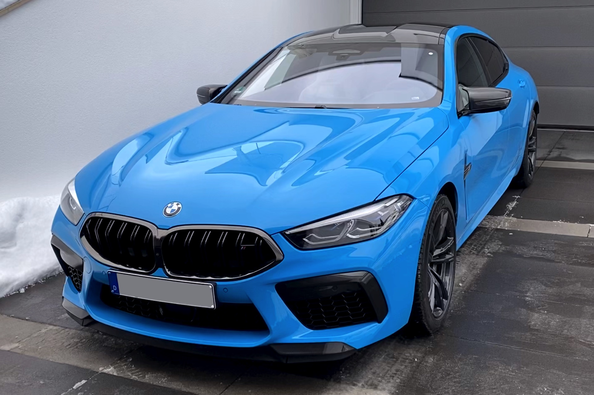 Apart from the individual paintwork, the BMW M8 Gran Coupe comes with all the standard features, sans the summer performance tires. In contrast with the U.S., winter tires are mandatory in Germany. Inside, Tomczyk picked the full-grain Merino fine-grain leather in Silverstone and Black – a combination which works wonders with the blue exterior. Being the Competition model, this M8 Gran Coupe features black accents all around and a series of carbon fiber upgrades. The standard carbon roof, the carbon spoiler lip and the carbon diffuser elements around the four tailpipes of the exhaust system are painting a beautiful picture.