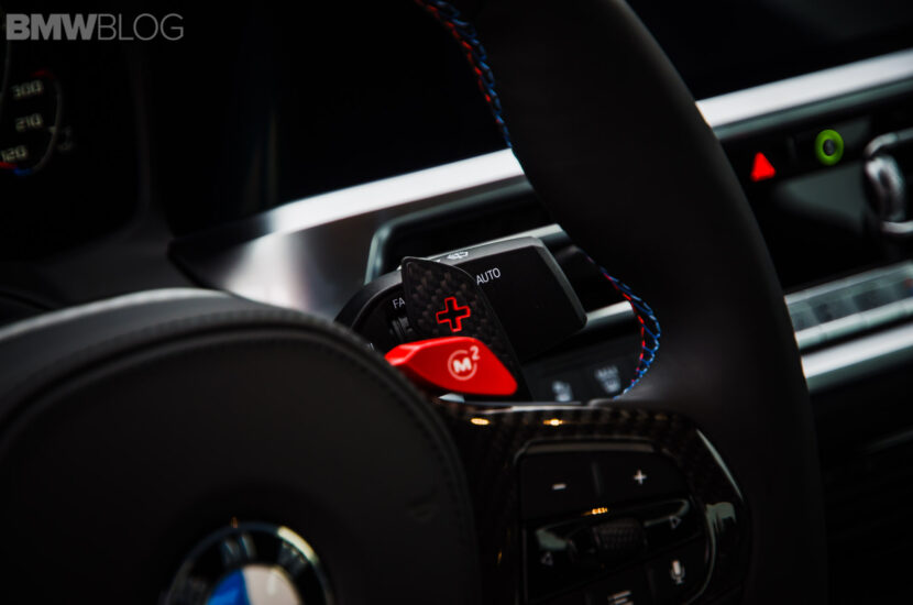 The interior follows the design of the regular BMW 4 Series with differences, of course. There is plenty of carbon fiber inside and the gear knob and shift paddles on the steering are unique to the M3/M4. The knob is small and very handy to use, the paddles in carbon fiber are quiet and on the back they have some rubber for a good grip and feeling when changing the gear.