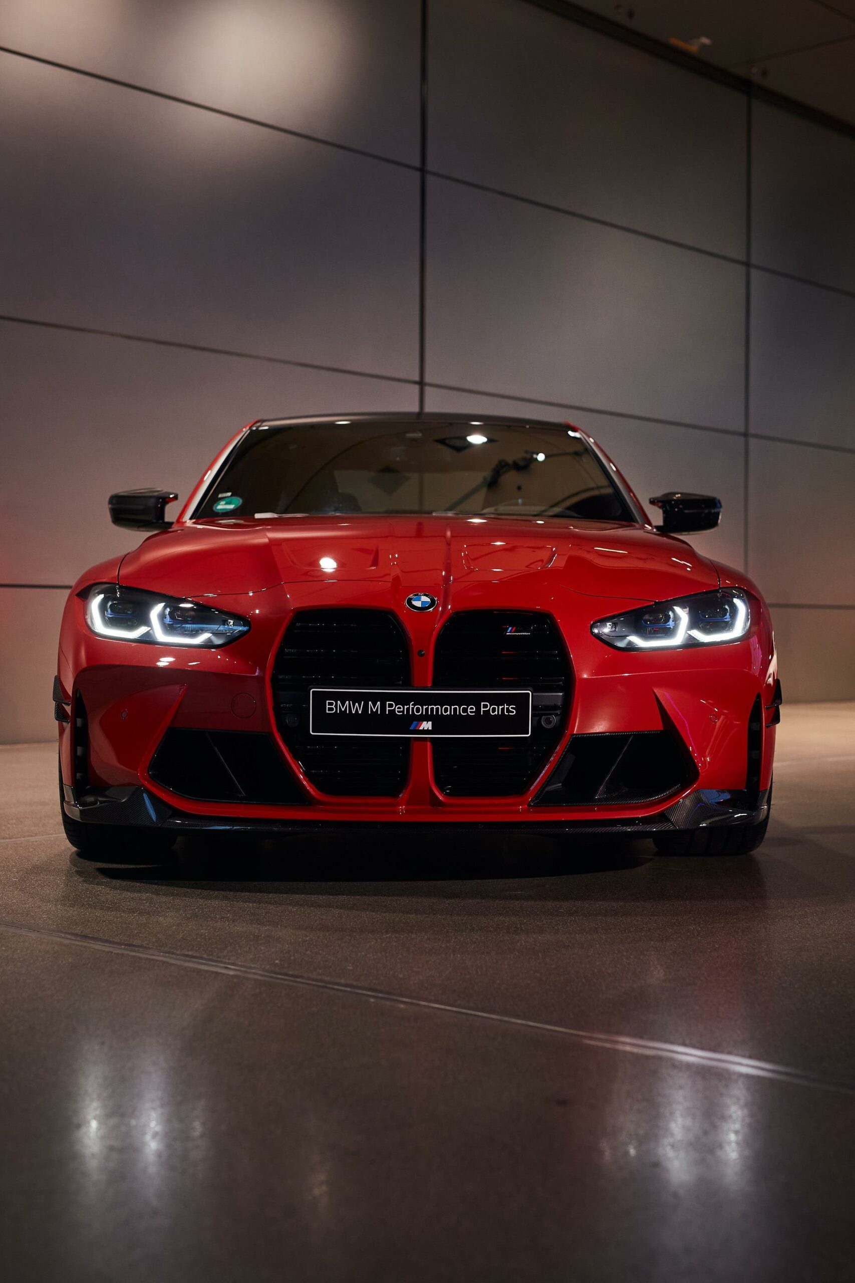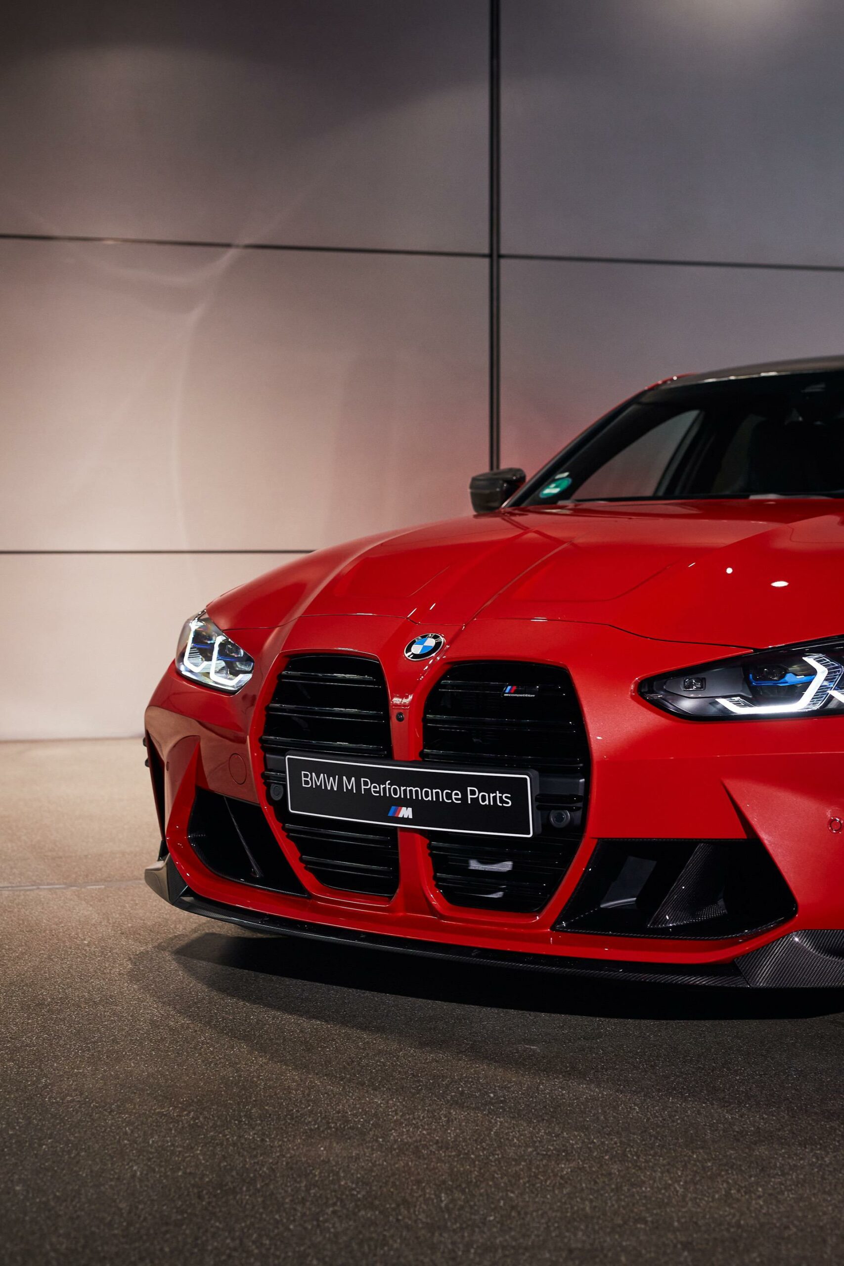 But the aftermarket treatment doesn’t stop here. As with most M cars, the M designers in Munich started their work by shaping up a series of carbon fiber parts. So the new G80 M3 and G82 M4 get an M Performance carbon front attachment, M Performance carbon front splitter and carbon M Performance Aero Flicks. On the side, you can see the M Performance carbon air breathers and M Performance carbon side skirt trims.