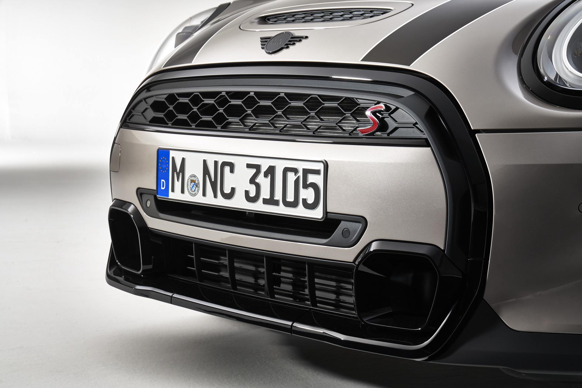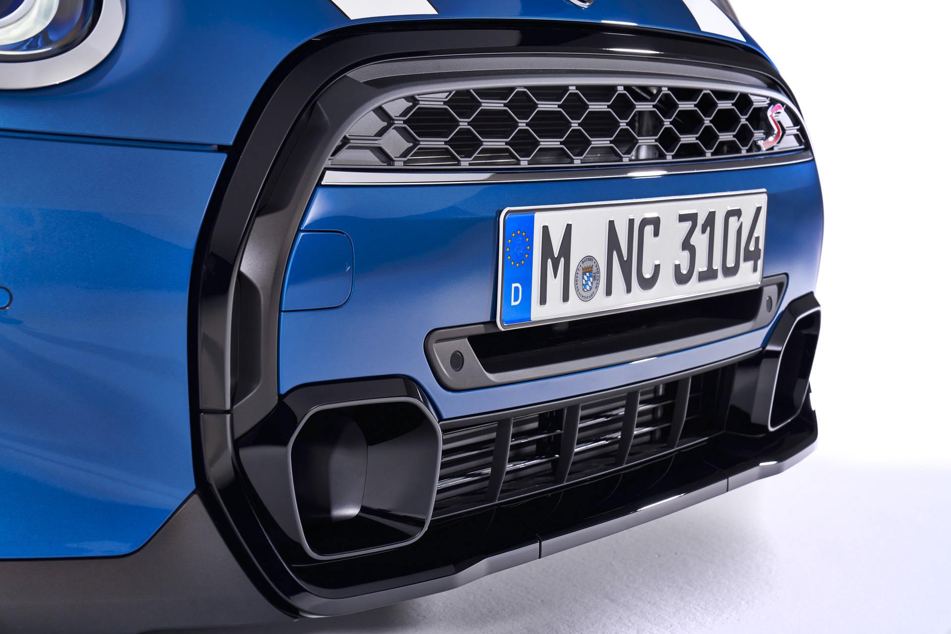 At the front, the new air curtains are integrated into the front bumper and the front fog lights have been removed. The grille is also much larger, with a hexagonal design and a body colored panel that bisects the design and houses the license plate. It seems as if MINI caught whatever the 4 Series has come down with. John Cooper Works variants also get large front air intakes, finished in gloss black.