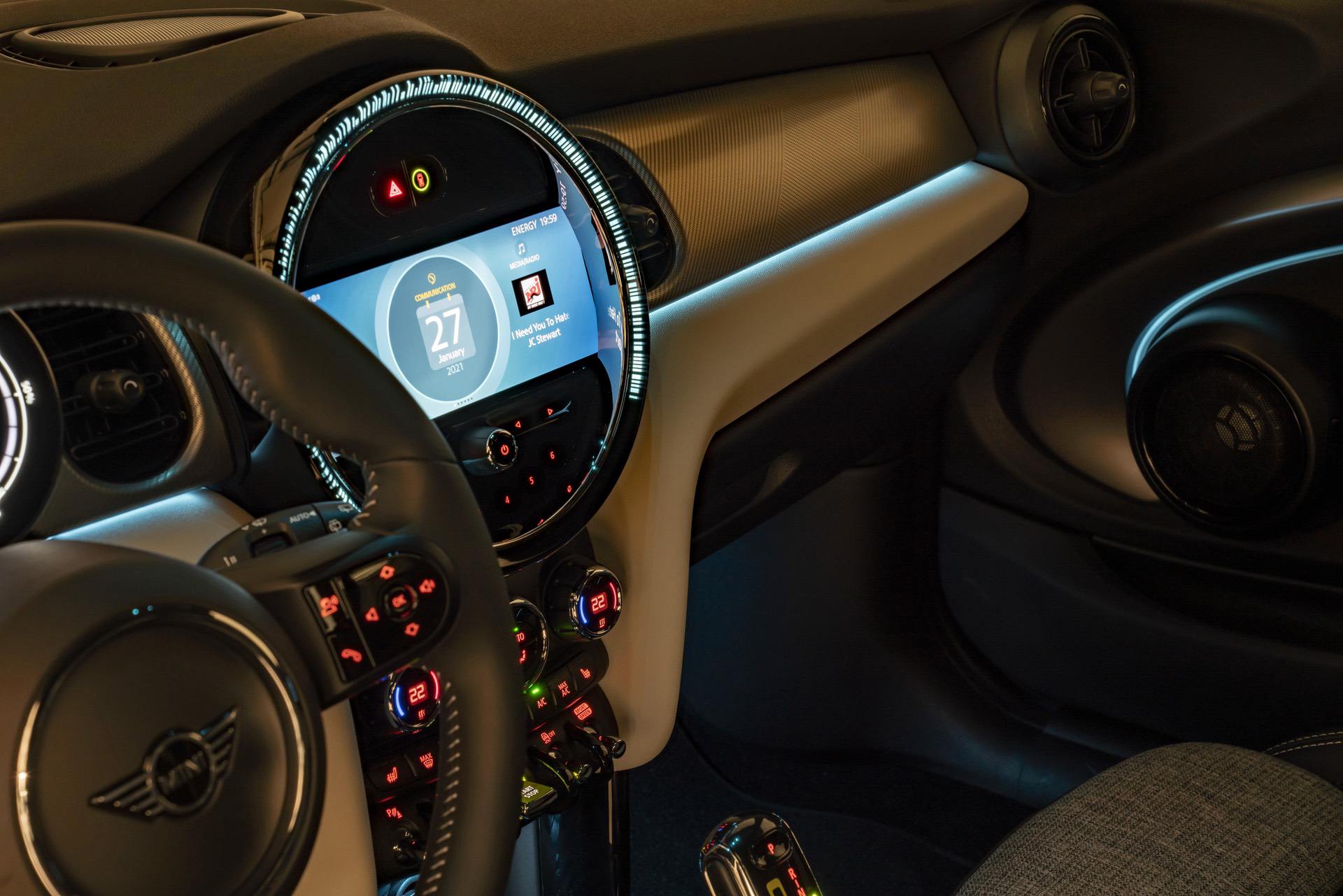 Inside, a slightly new steering wheel sits in front of a digital gauge screen, originally seen on the MINI Electric, and a new version of MINI’s version of iDrive is now inside the familiar looking central circle.