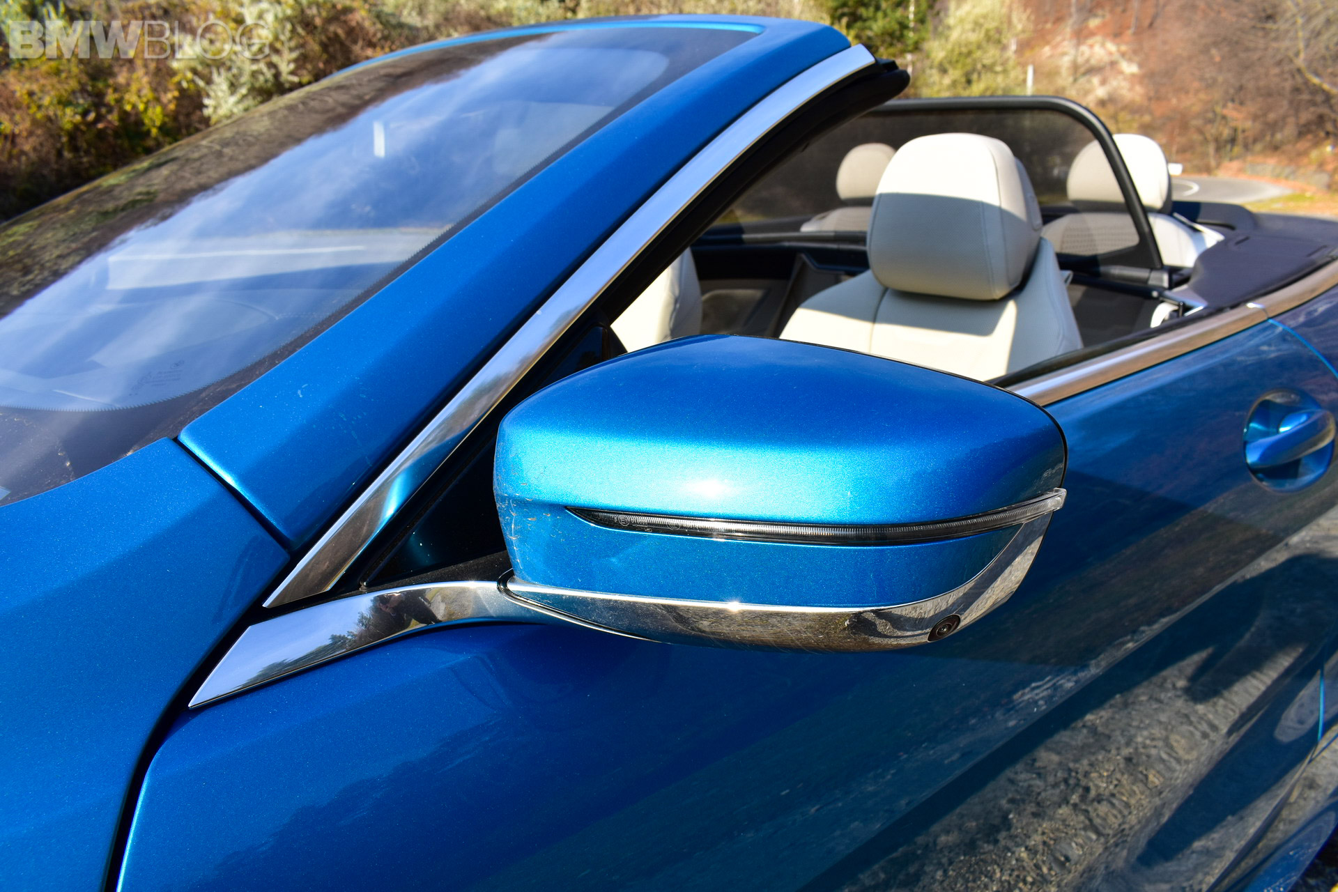I was also baffled by the fact that the G14 is not equipped with a proper windscreen washing system specially designed for use in a cabriolet. The three sprinklers are attached beneath the engine hood and they spray water all over the windshield. While that might be good when the roof is up and the car is is motion, there’s some good chance you’ll get the shower when going “topless”. The wiper-integrated washers could have solved this issue.