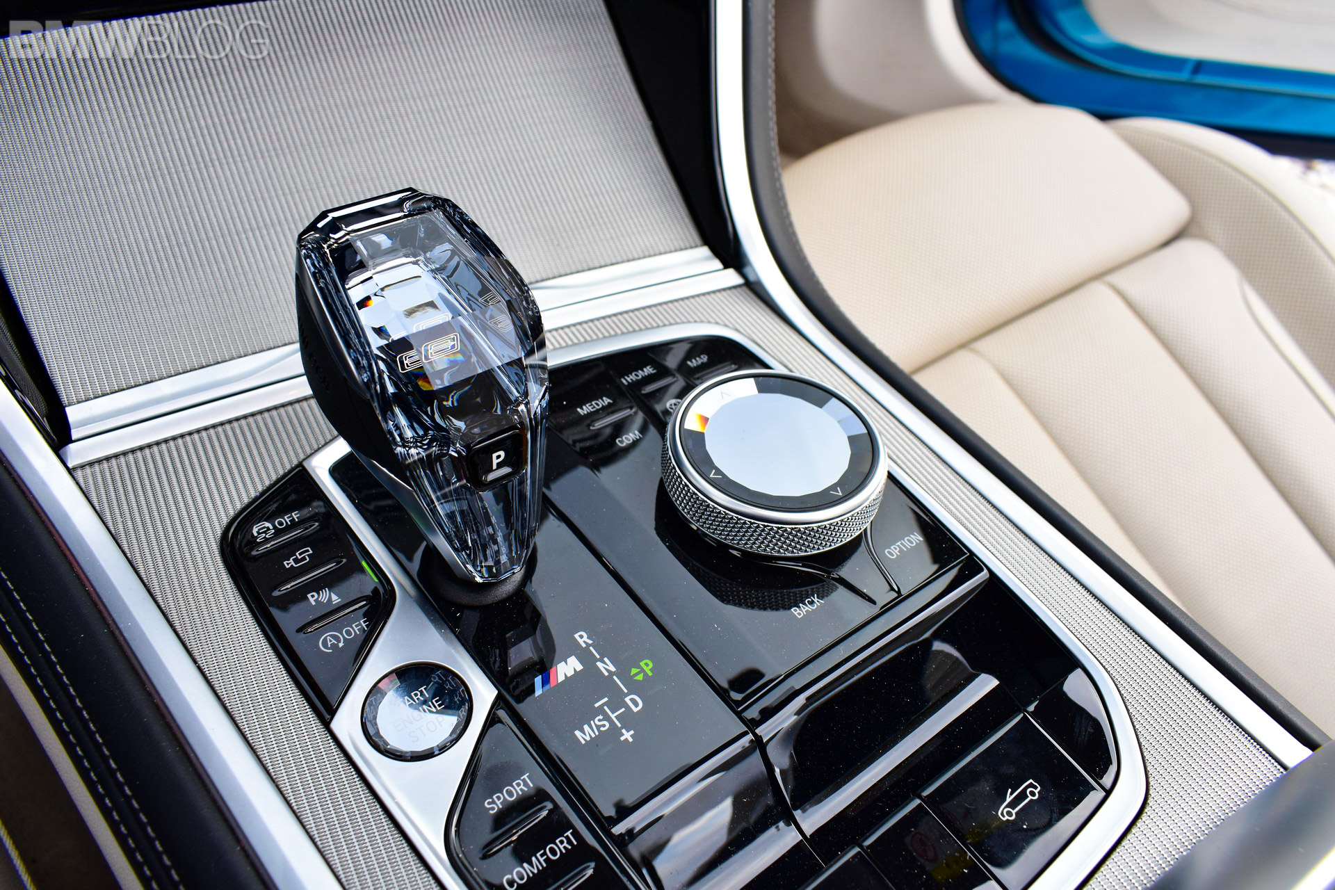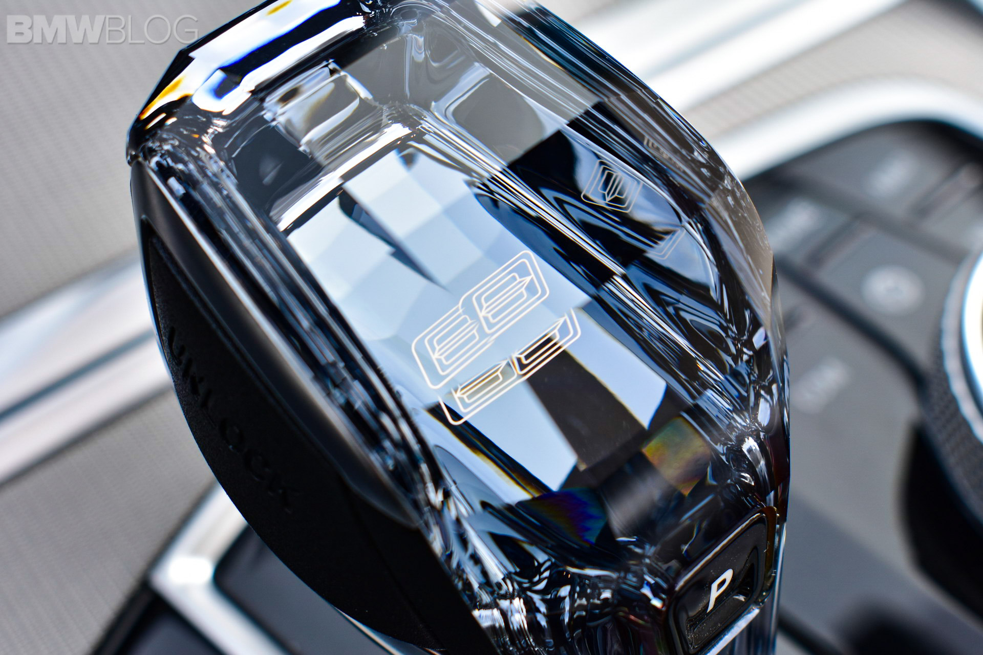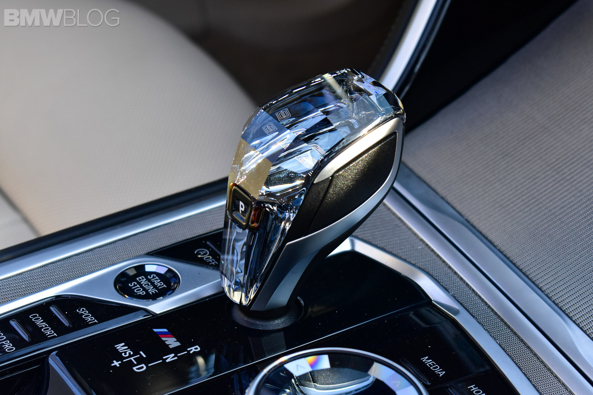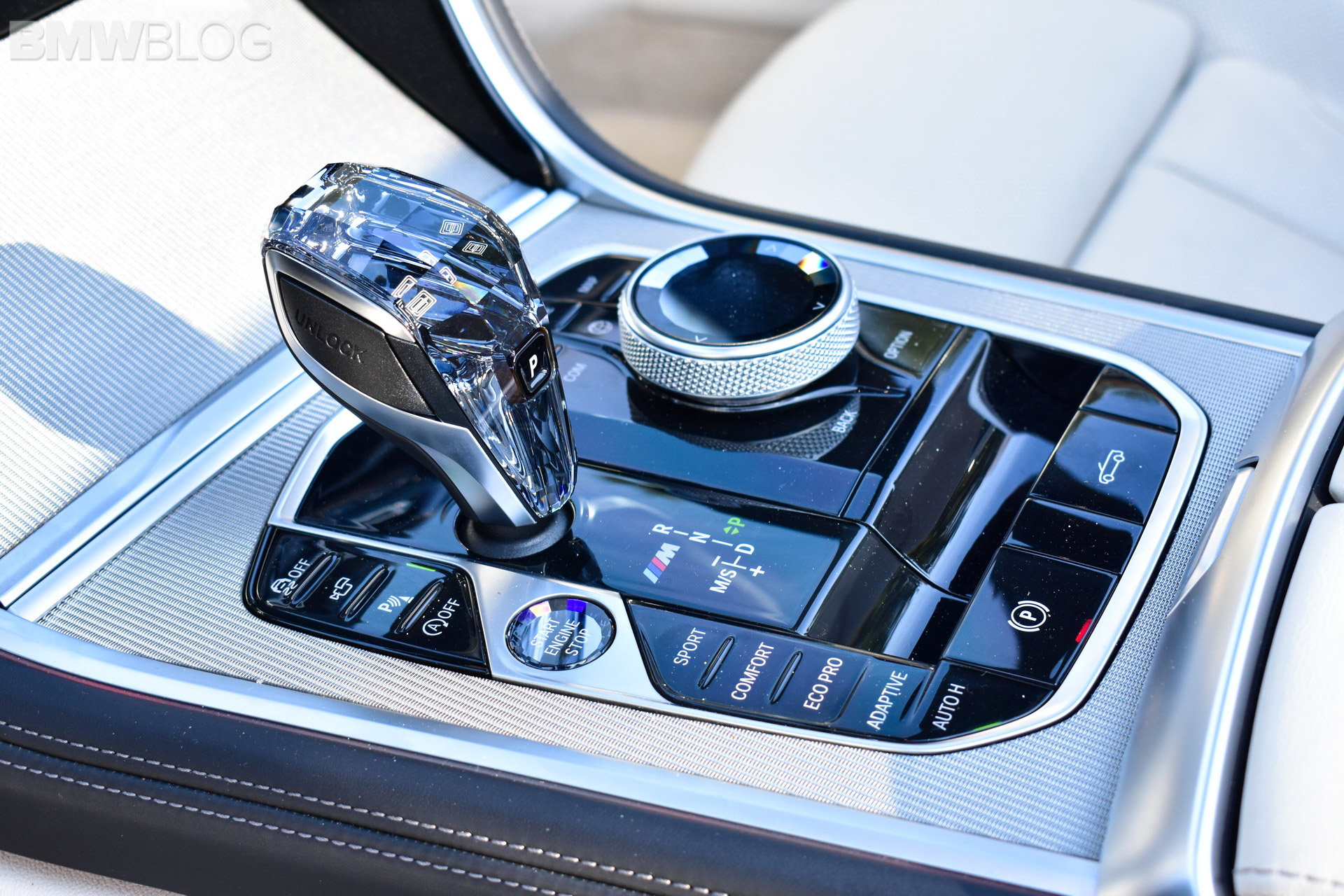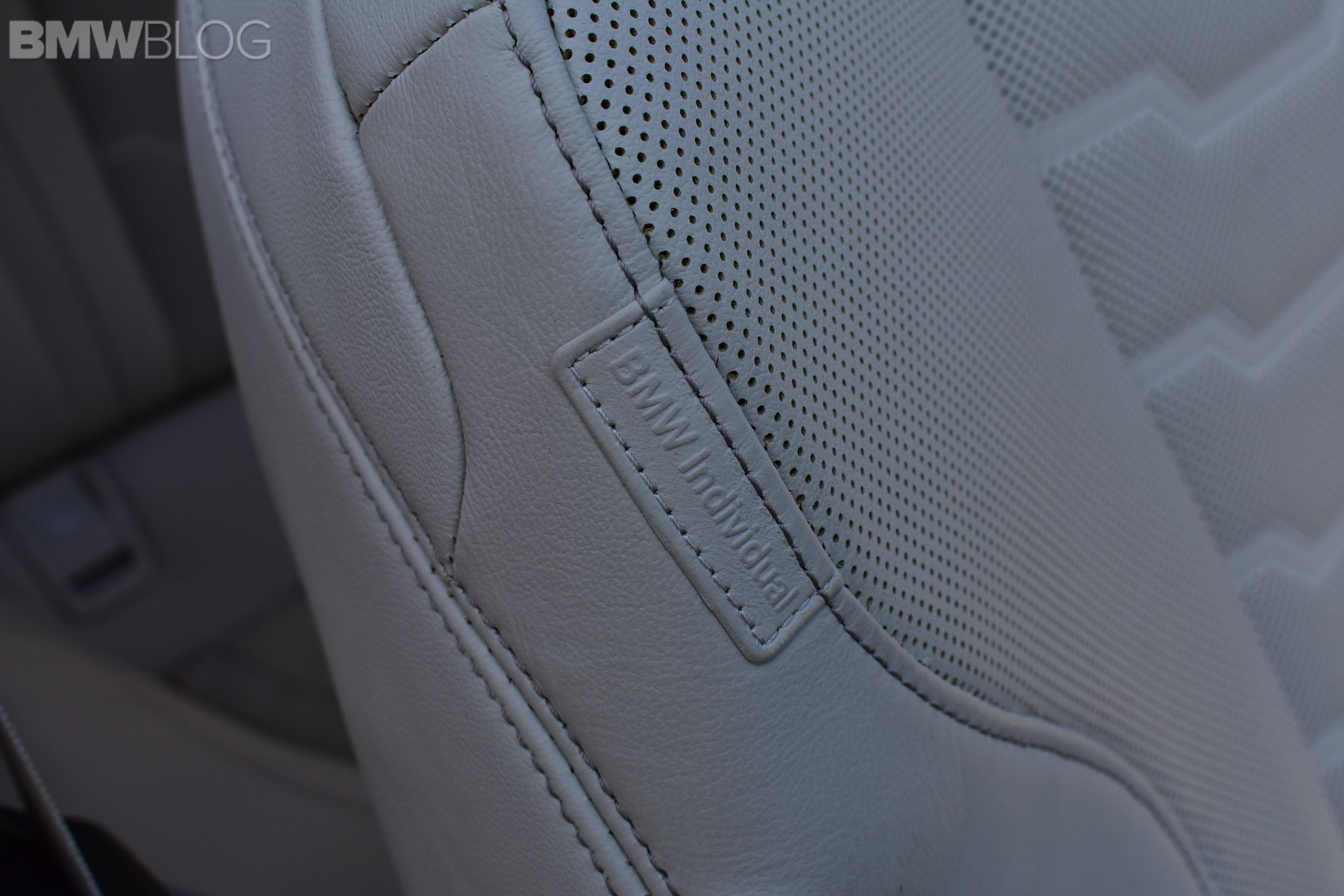 The cabin was dressed in a full BMW Individual Merino leather upholstery in Ivory White color, further complemented by the hi-tech M Aluminum trim on the center console and the CraftedClarity glass application for electronic gear shifter, iDrive controller, engine start/stop button and volume control knob.