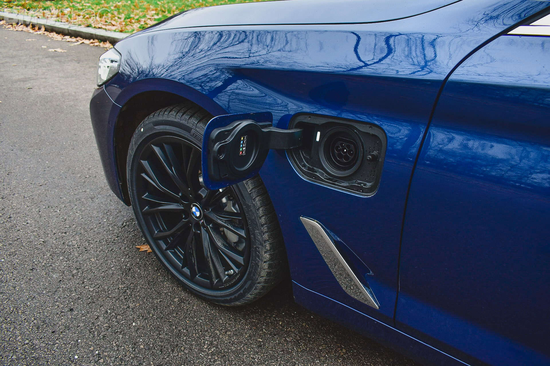 The distinctive sign to tell us this is an electrified 5 Series is the separate flap on the front wing, right above the chromed side air breather, hiding the charging port for the electric unit. Other than that, the “e” letter in the nomenclature of the model also reminds us that the car has considerable environmental aspirations.
