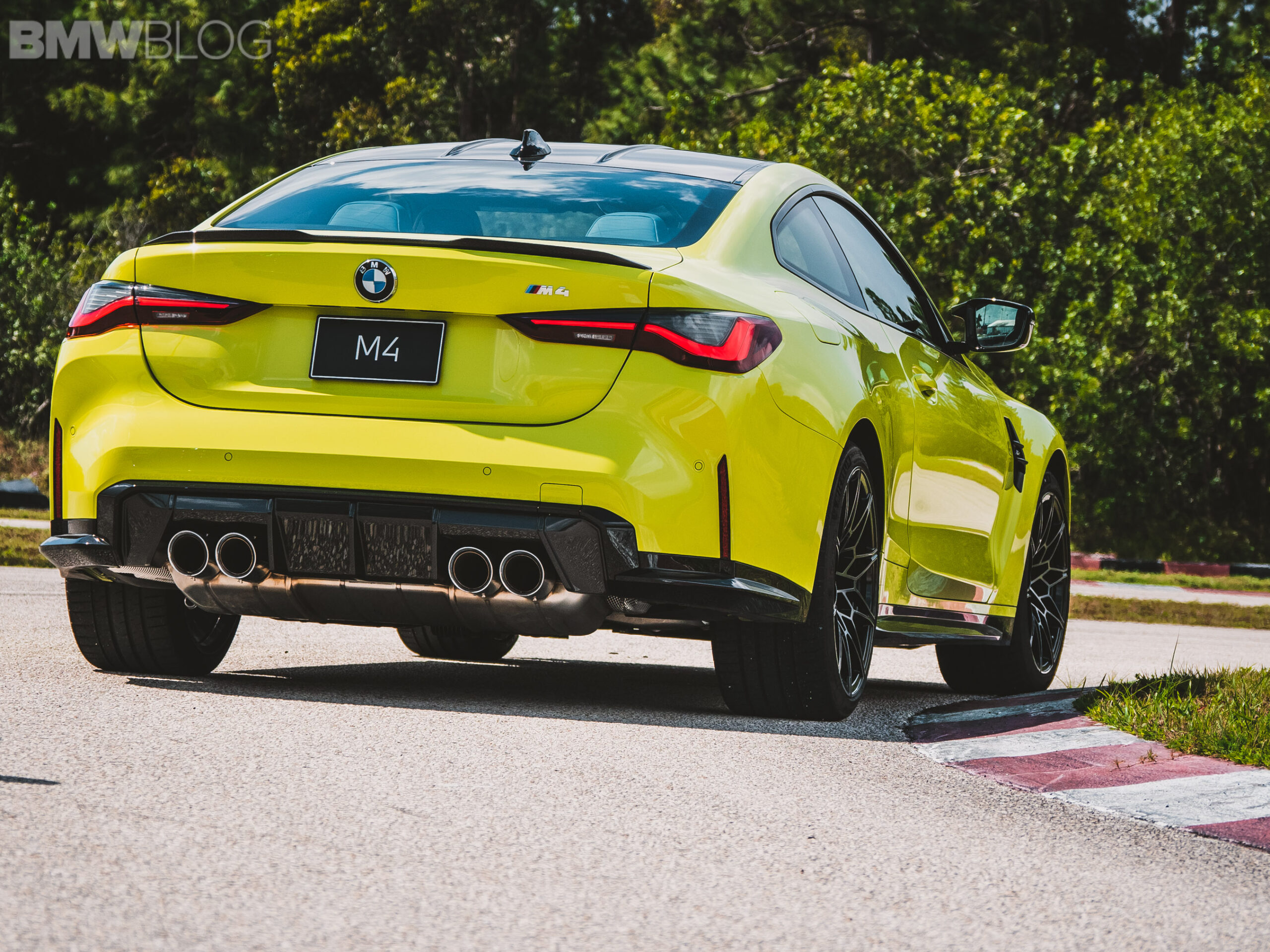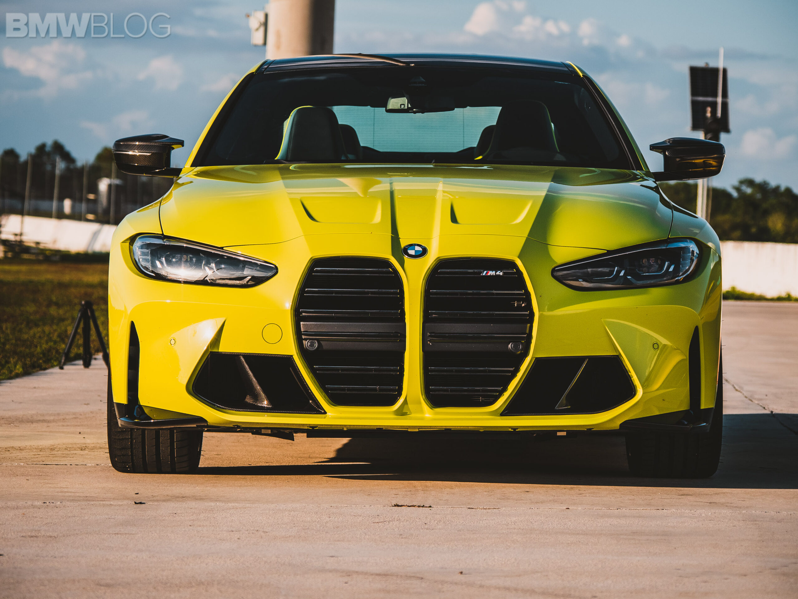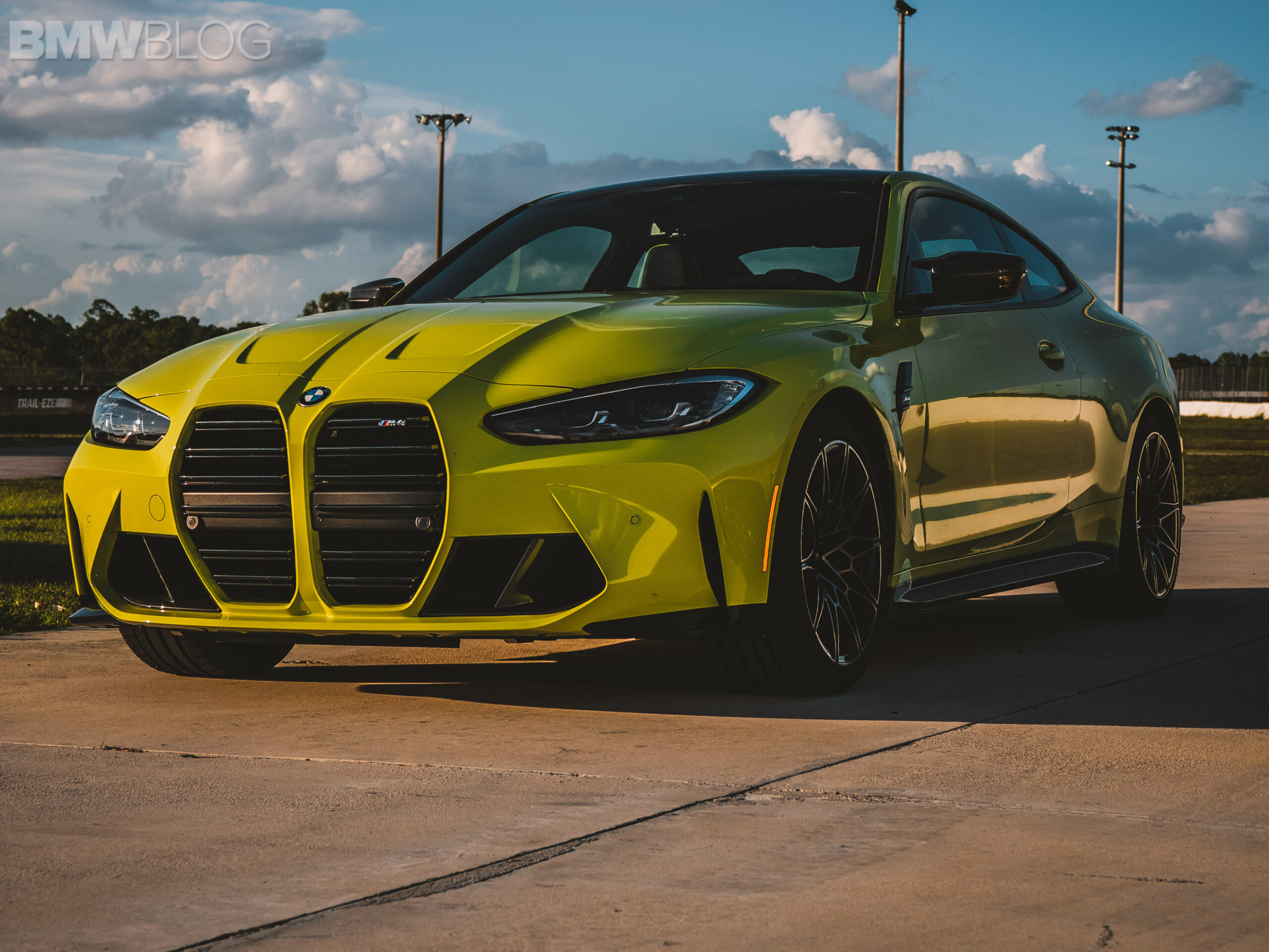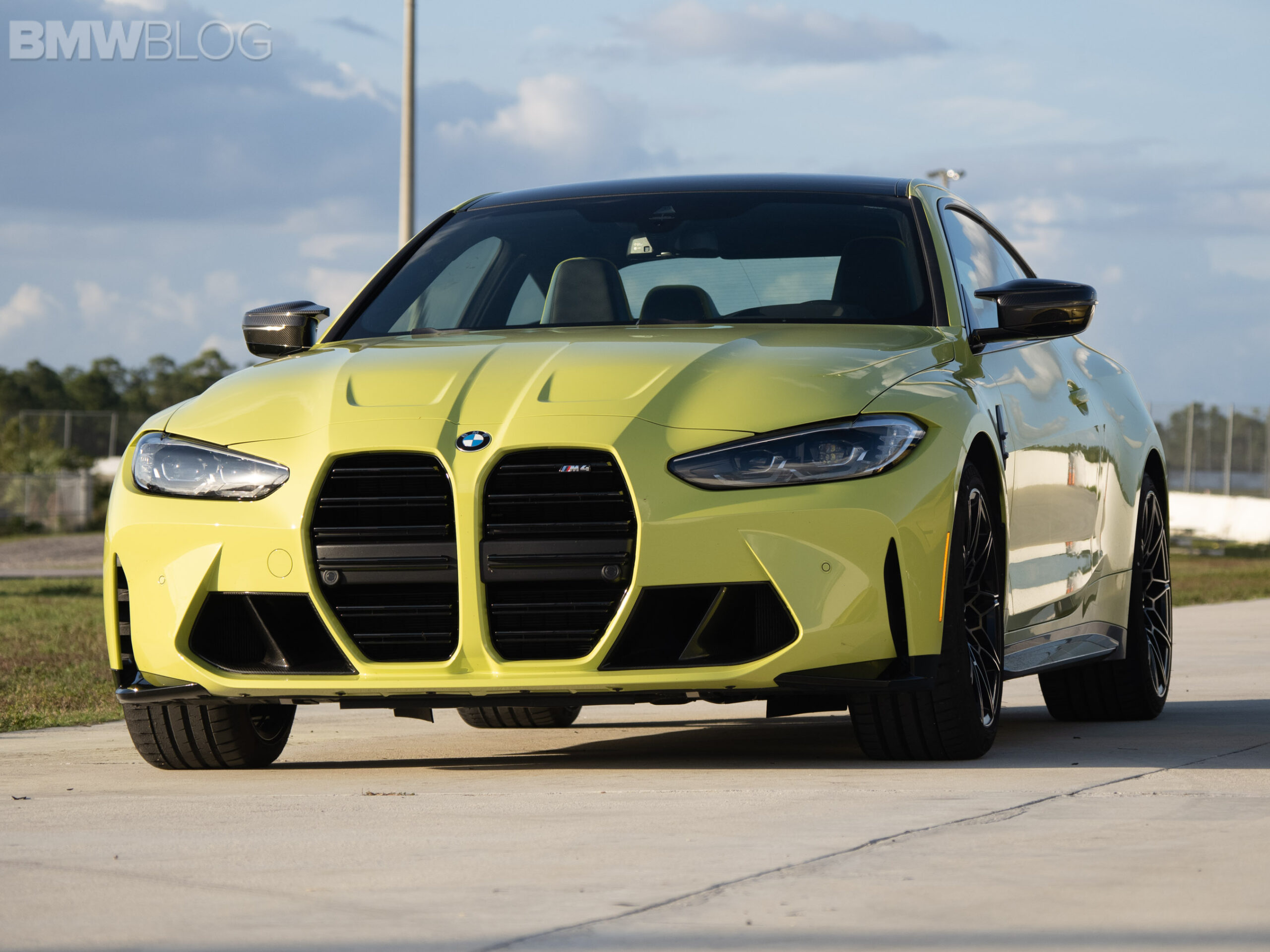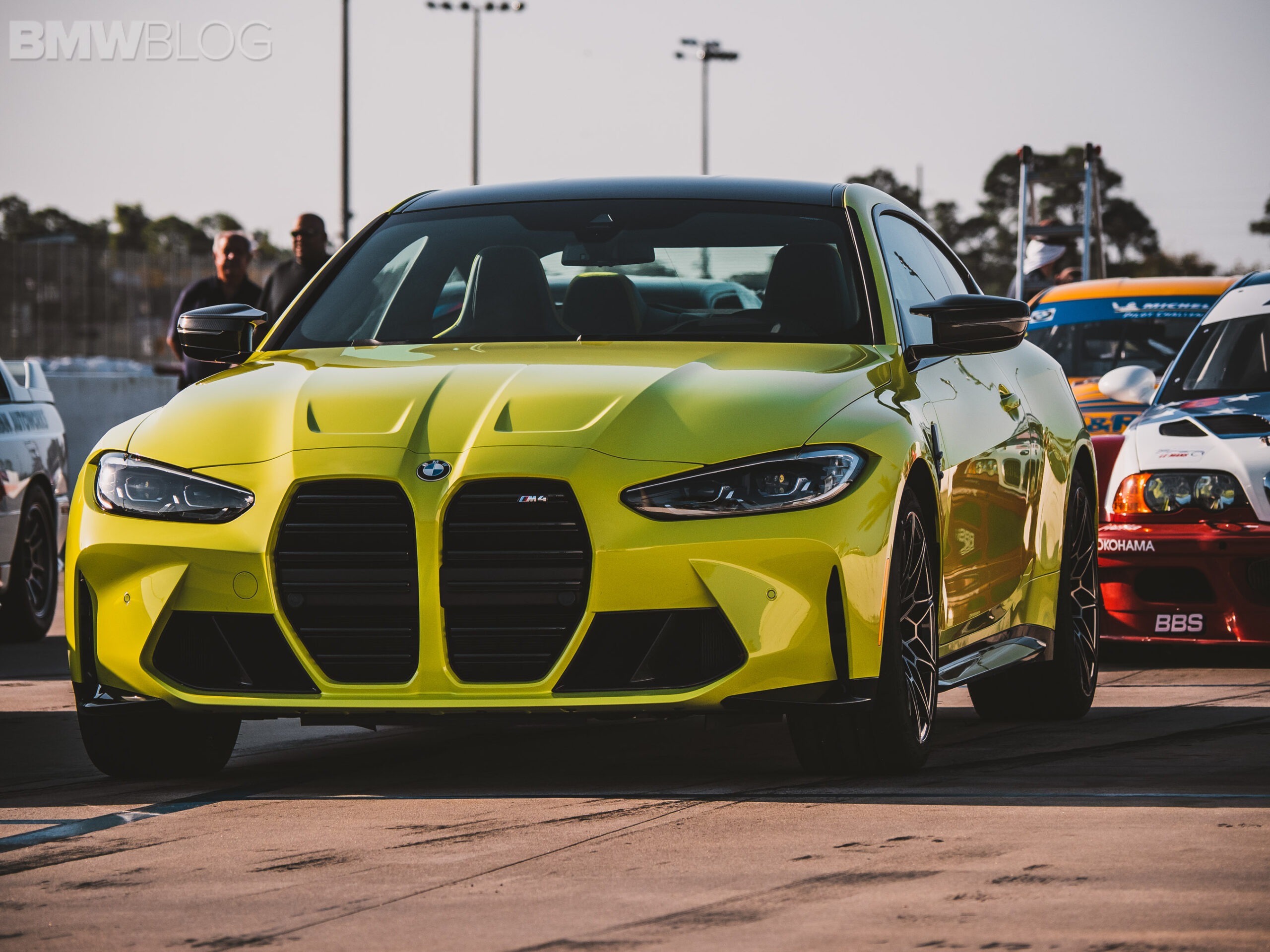 The two cars presented in Palm Beach were both rear-wheel drive and with the six speed manual. Whereas the G80 M3 in Isle of Man Green was in a stock form – no carbon fiber aero package, standard seats – the G82 M4 in Sao Paulo Yellow was decked out with the M Carbon Package, along with the carbon fiber sport seats with a BMW Individual leather.