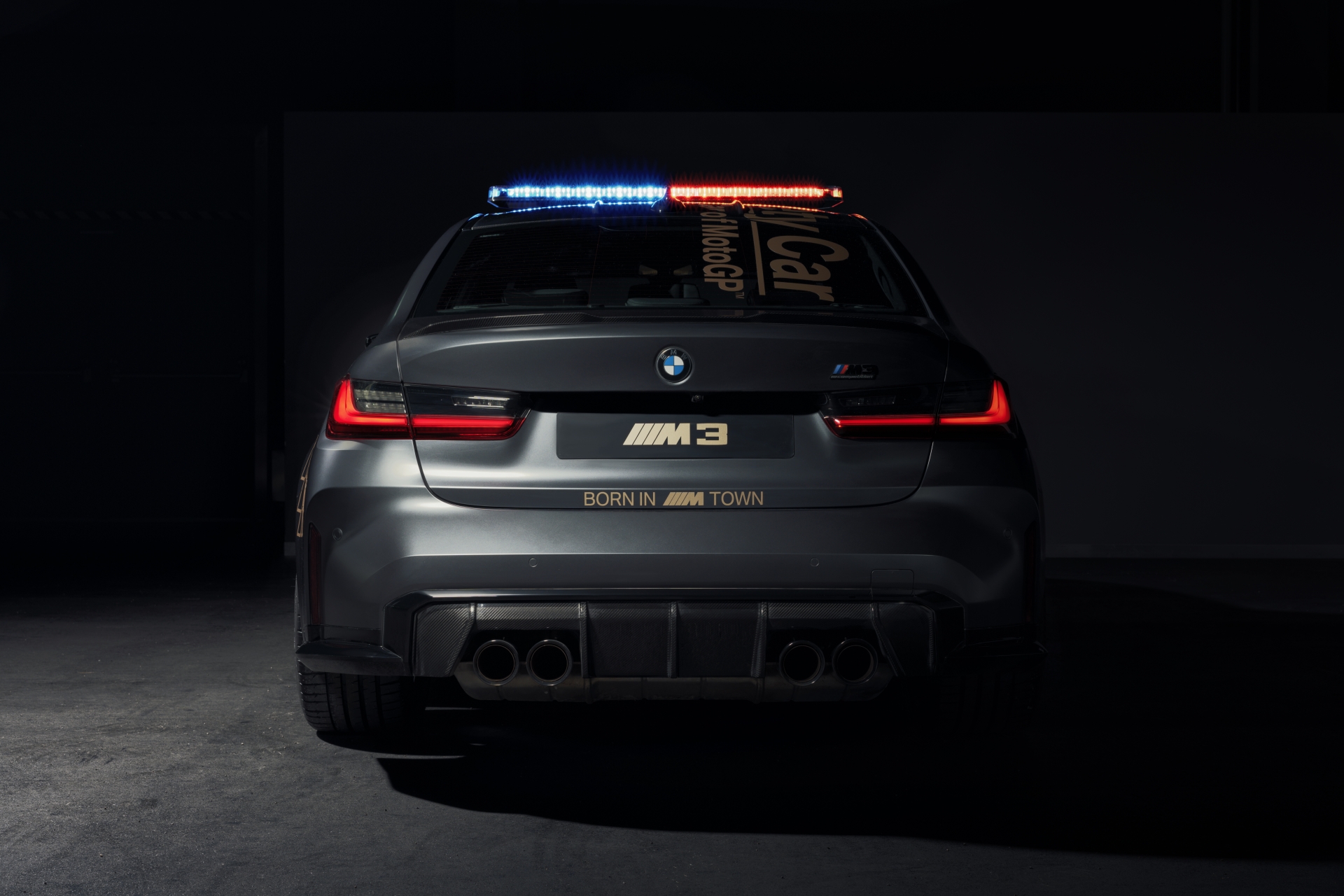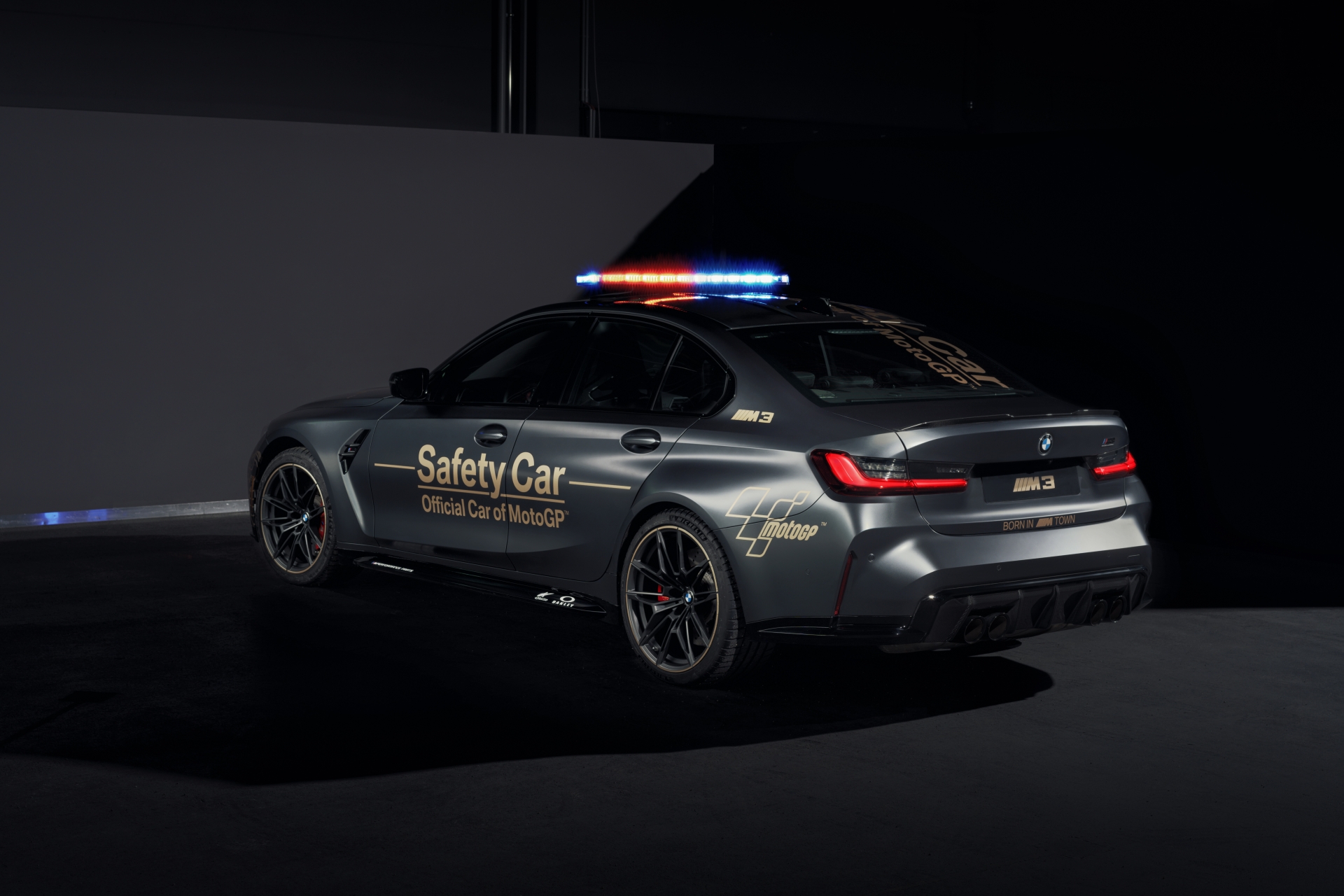 The lettering on the M3 Competition Sedan Safety Car and the M5 CS Safety Car is chosen in the contrasting Galvanized Gold shade, whereas the decals on the M4 Competition Coupe Safety Car are featured in pure black.