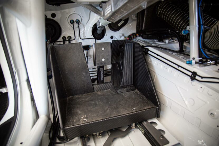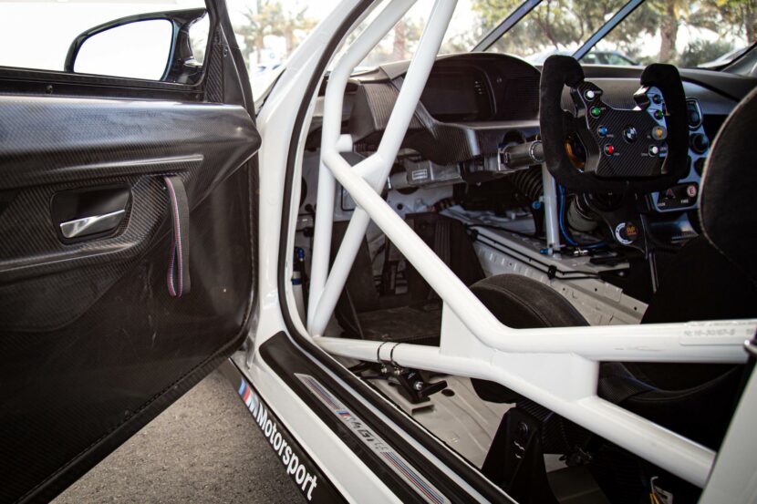 The race car comes with the 7-speed dual clutch transmission (DCT) featuring custom motorsport software which transfers power to 18-inch wheels wrapped with full racing slicks via a mechanical limited-slip differential. The chassis is reinforced with an FIA compliant BMW Motorsport welded safety roll cage. It features, three-stage adjustable motorsport anti-roll bars and specially-valved Ohlins motorsport shock absorbers at the corners. Plus, it’s equipped with fixed six-piston front and four-piston rear AP brakes controlled by a cockpit adjustable AP racing pedal box and a manually adjustable brake bias.