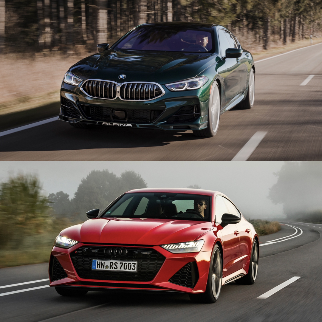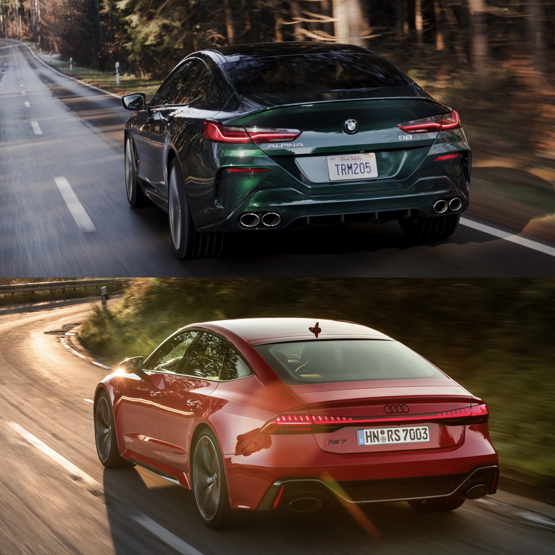 Now that the ALPINA B8 Gran Coupe is finally here, it’s time to take a look at how it compares to some of its rivals. While one might argue that its most common rival actually comes from its own parent brand, the BMW M8 Gran Coupe. However, intra-BMW competition aside, the B8’s biggest competitor is likely going to be the Audi RS7 Sportback. Even though there is a decent price gap between the two of them. The RS7 starts at around $114,000 and the B8 Gran Coupe at $139,000. And as always, these photo comparisons are subjective, so with that being said, let’s take a look.