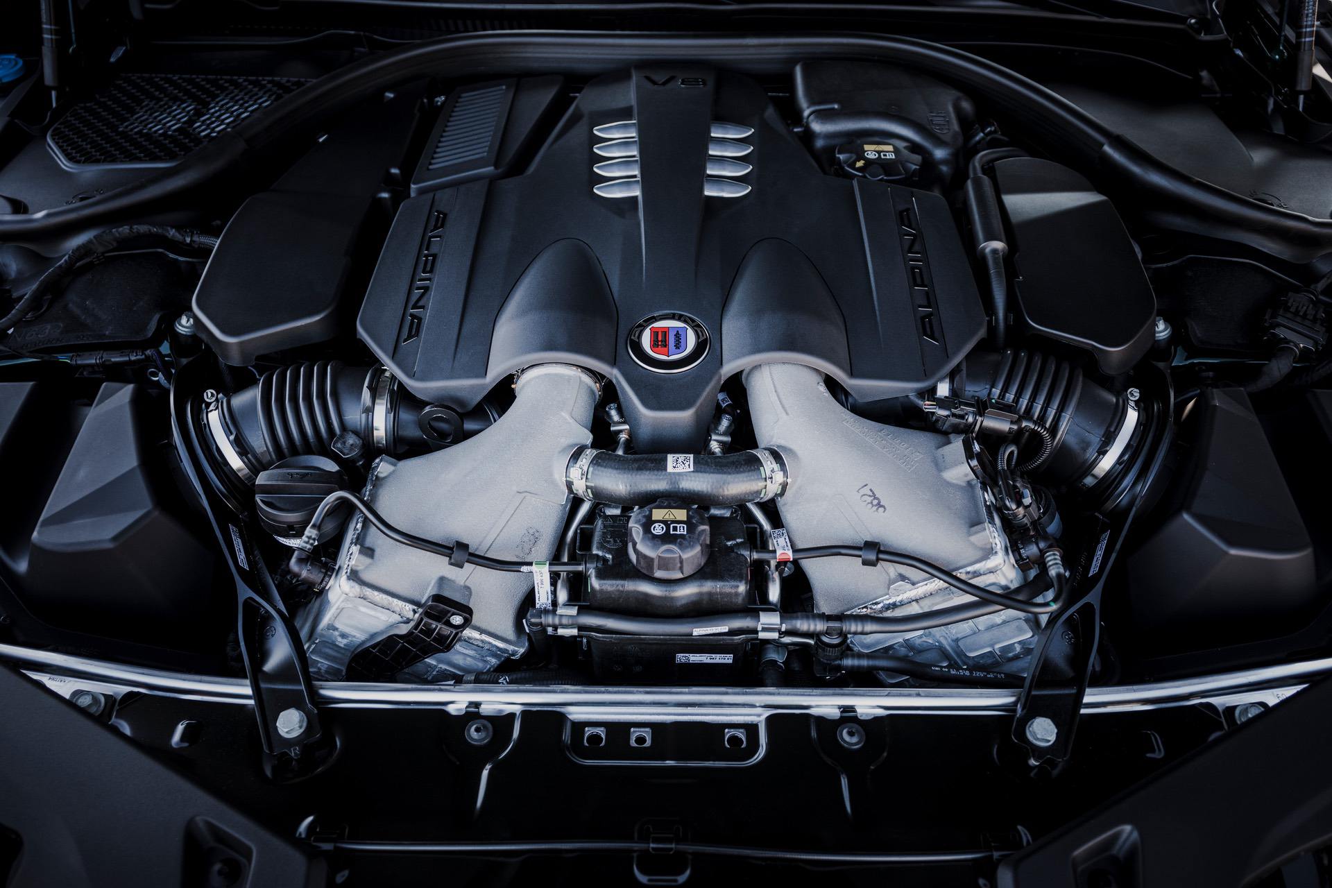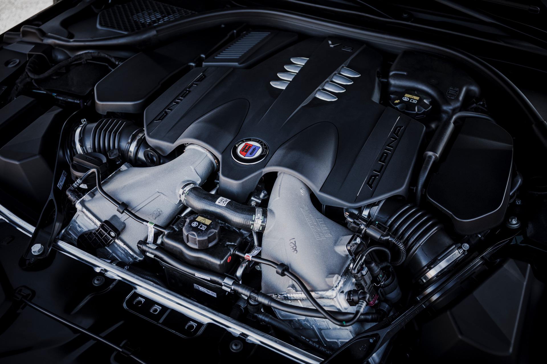 Obviously, the ALPINA B8 Gran Coupe starts life as a BMW M850i Gran Coupe but after the team at ALPINA is done with it, the B8 is a vastly superior machine. For starters, the BMW 4.4 liter twin-turbocharged V8 is taken out, torn down, and fitted with a ton of new kit. The usual ALPINA engine treatment involves replacing the pistons, intercooler, intake manifold, exhaust manifold, fitting larger twin-scroll turbochargers, and giving it its own bespoke tune.