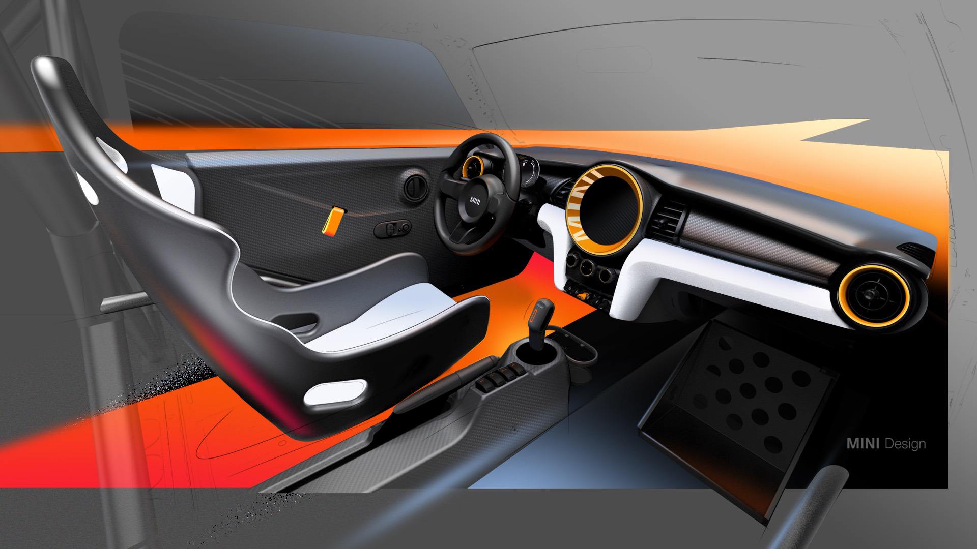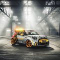 Due to the lightweight measures taken to turn the MINI Cooper SE into the MINI Electric Pacesetter, the latter weighs about 130 kg (286 lbs) less than the former. So while it uses the same powertrain as the standard electric MINI, it’s quicker to 60 mph, doing the deed in 6.7 seconds, versus 7.3 seconds for the standard car.