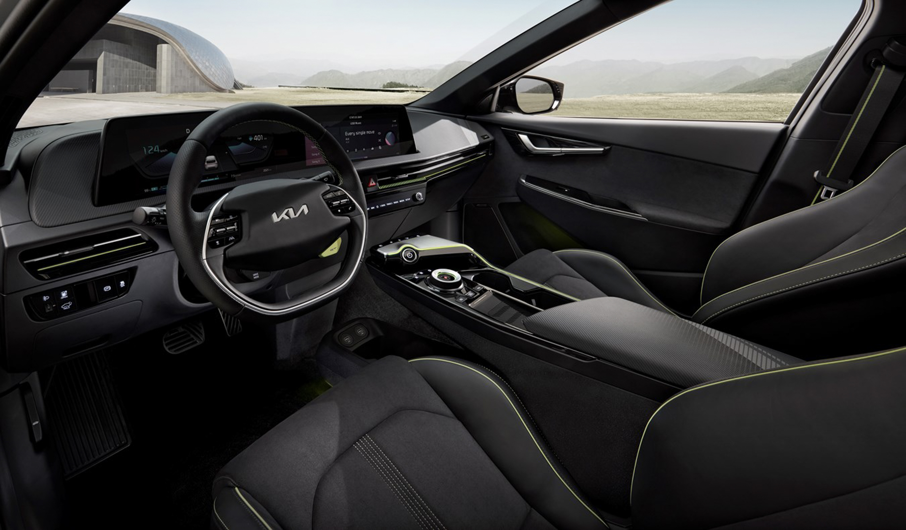 The interior is also quite nice looking, especially in EV6 GT (the performance variant seen in these photos) spec. The seats are sporty and supportive looking, the dash is simplistic but handsome, and its tech isn’t too in-your-face. Nothing special but nothing offensive, either.