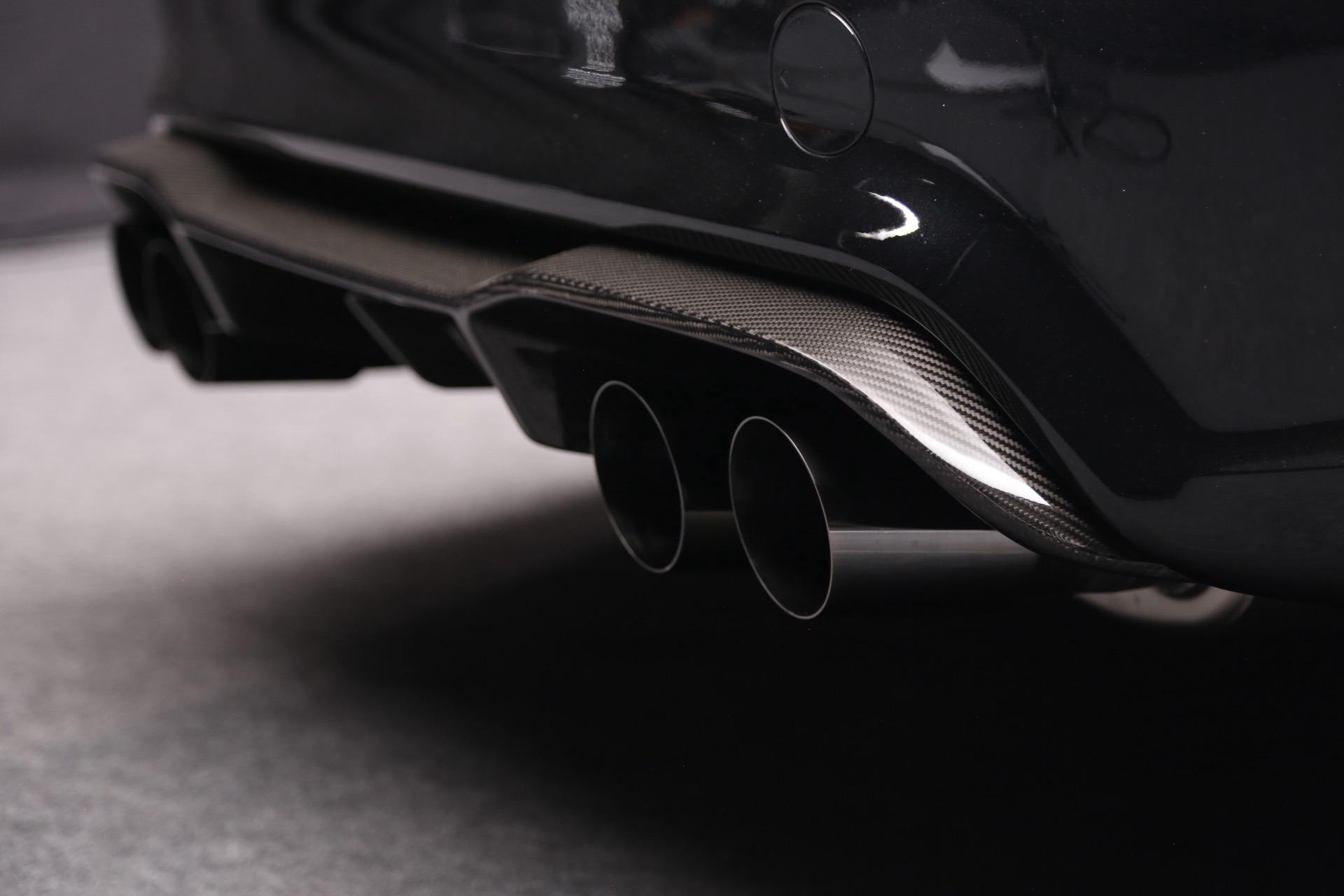 In contrast, the design of the vehicle’s exterior is an understatement. A roof and fenders made of carbon, a hood built in the GTS carbon look, and a newly designed 3-part carbon front spoiler as well as a BMW CS rear spoiler and carbon diffuser are only noticeable on the Black Beauty when you take a closer look.