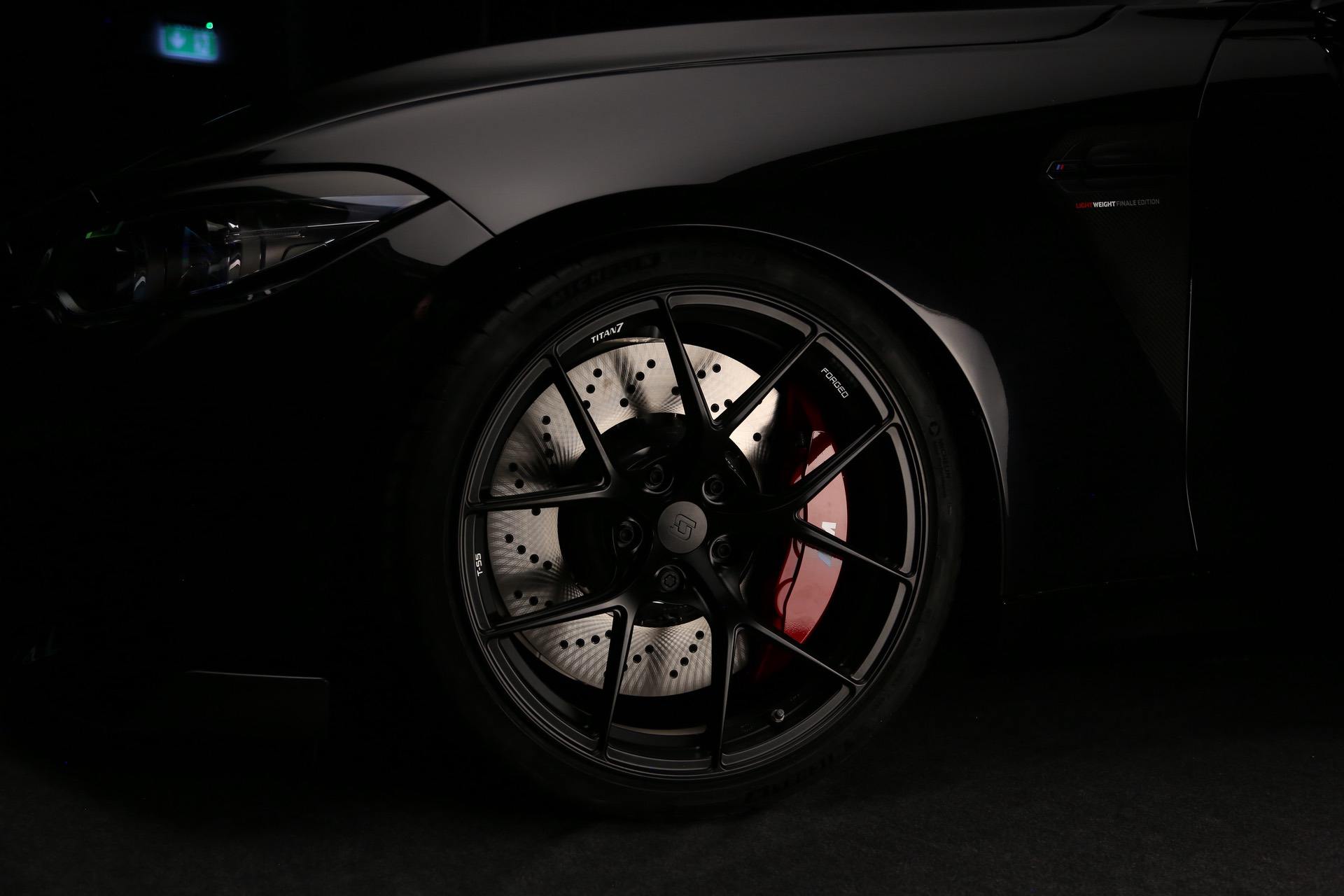 The Titan 7 forged wheels, for which the LIGHTWEIGHT company is currently applying for homologation in Germany, in the dimensions 9.5×19 ET 27 and 10.5×19 ET 44, are being used to roll all that power onto the pavement.