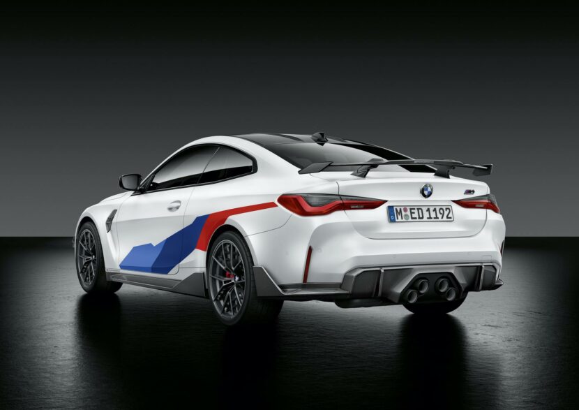 From what we can make out here, this particular M4 has some interesting bits of aero attached to it. Up front there’s a massive splitter attached to the underside of the bumper, the wheels have a different design and hide golden brake calipers underneath which traditionally means they have carbon ceramic rotors. Then there’s the rear end, where a massive spoiler is attached to the boot lid and where we can also take a look at what seem to be Cup 2 tires (judging by the grooves).