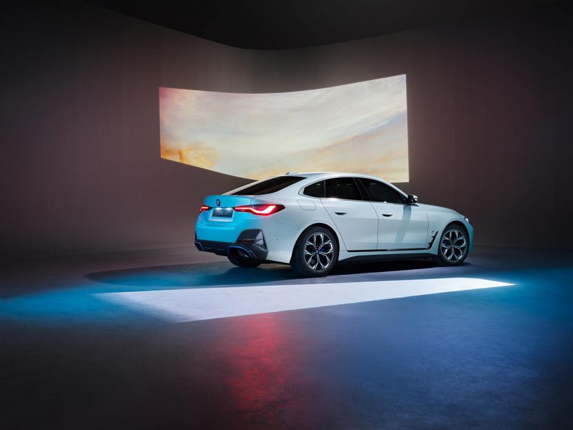 The BMW i4 M Sport celebrates its official world premiere at the Auto Shanghai 2021, along with the iX electric crossover. This is the first time that BMW is showcasing the i4 with an M Sport Package, a preview of the BMW i4 M50. As expected, the i4 gets the typical M Sport bits, starting with an aggressive front bumper complemented by large air curtains. In the back you can also see the sculpted and dynamic diffuser adorned with blue accents, typical to a BMW i car.