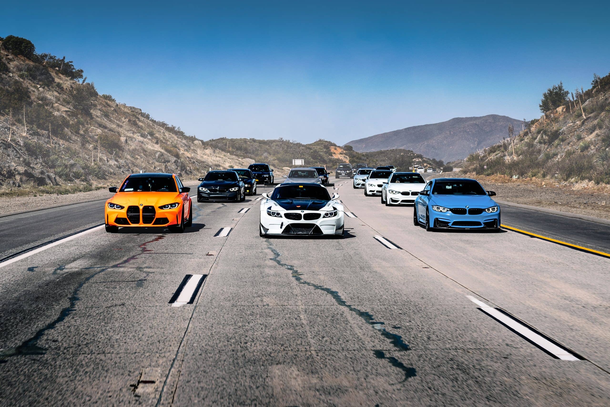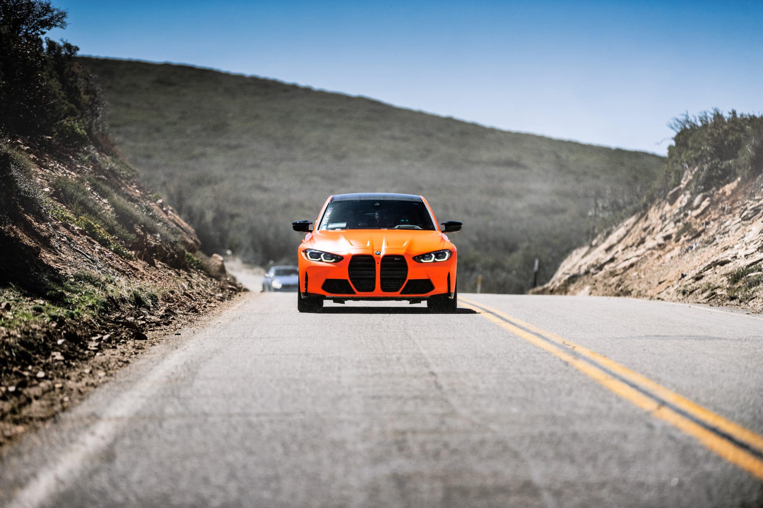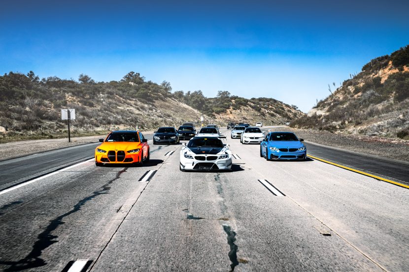 What’s funny about the M3 in these photos is that, despite its vibrant color, it’s not even the wildest looking Bimmer in the pack. There’s a wide-body BMW Z4, with enough aero to make it look like a GT3 racer, and a BMW M6 Gran Coupe with a sort of purplish wrap that has an almost mirror-like finish. While some other cars are seen in the pack of Bimmers, such as a Mclaren and a Jaguar XKR, it’s mostly wild looking BMWs and the bright orange G80 BMW M3 is among the most vibrant.