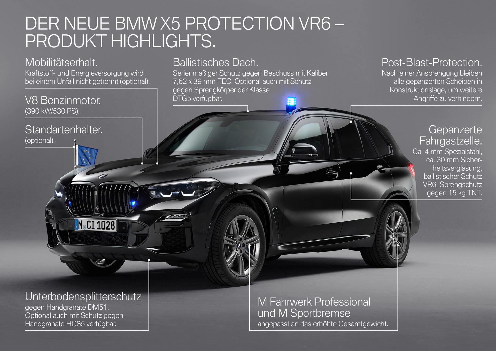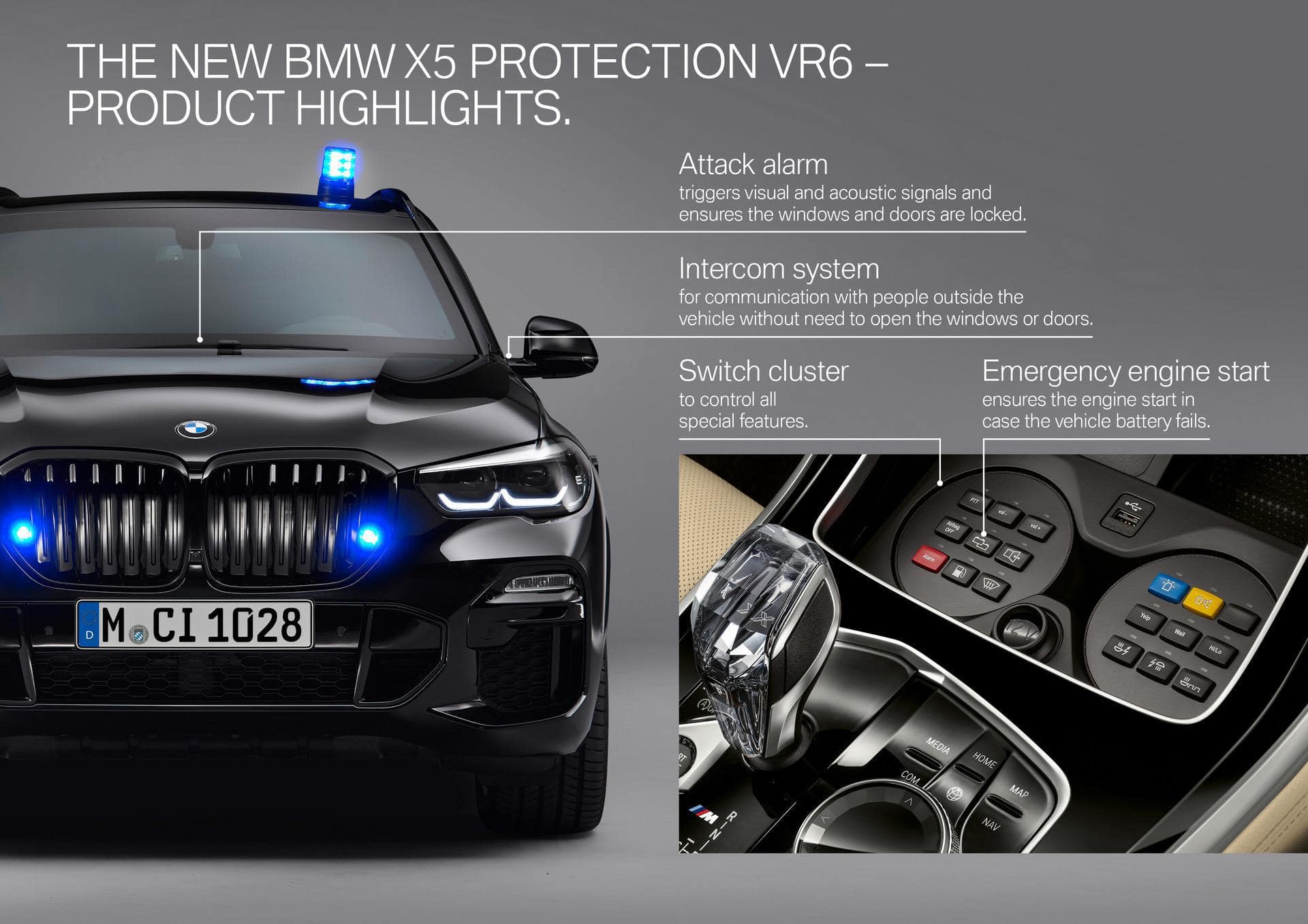 The footage showcases the extensive process to build a car that can withstand sustained enemy attack whilst keeping occupants safe. The vehicle was also put to the test on track and at the shooting range, providing viewers with unique insight into how it achieves its industry-leading safety certification. The BMW X5 Protection VR6 shields occupants with approximately 30 mm thick multi-layer safety glass that features an internal polycarbonate splinter protection layer. Combined with the armored passenger compartment, post-blast-protection, leak-resistant fuel tank and run-flat tires, the BMW X5 Protection VR6 can safeguard against attacks from short-range and long-range weapons.