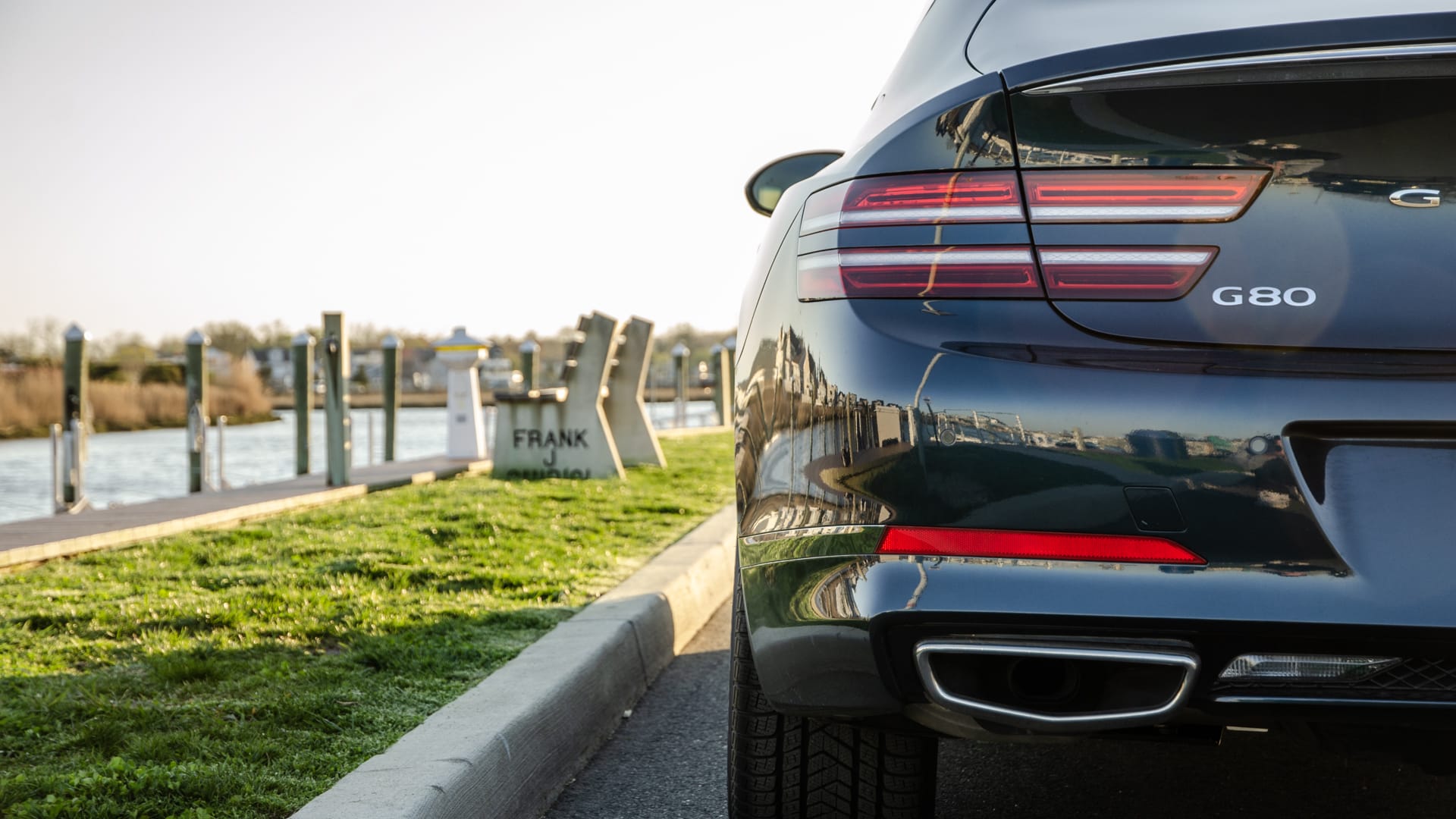 Up front, its large grille is blingy and unapologetic in a charming, confident way. Enthusiasts bemoan large grilles on modern cars like the new Audi A8 and BMW 4 Series, and deservedly so, because they feel cynical. Whereas the massive grille on the G80 is cheeky and fun. The large grille is flanked by split horizontal headlight bars, a completely unique design in the industry and one that makes the G80 immediately recognizable, even at a distance. The split light bar design makes its way out back, too, where its taillights follow.