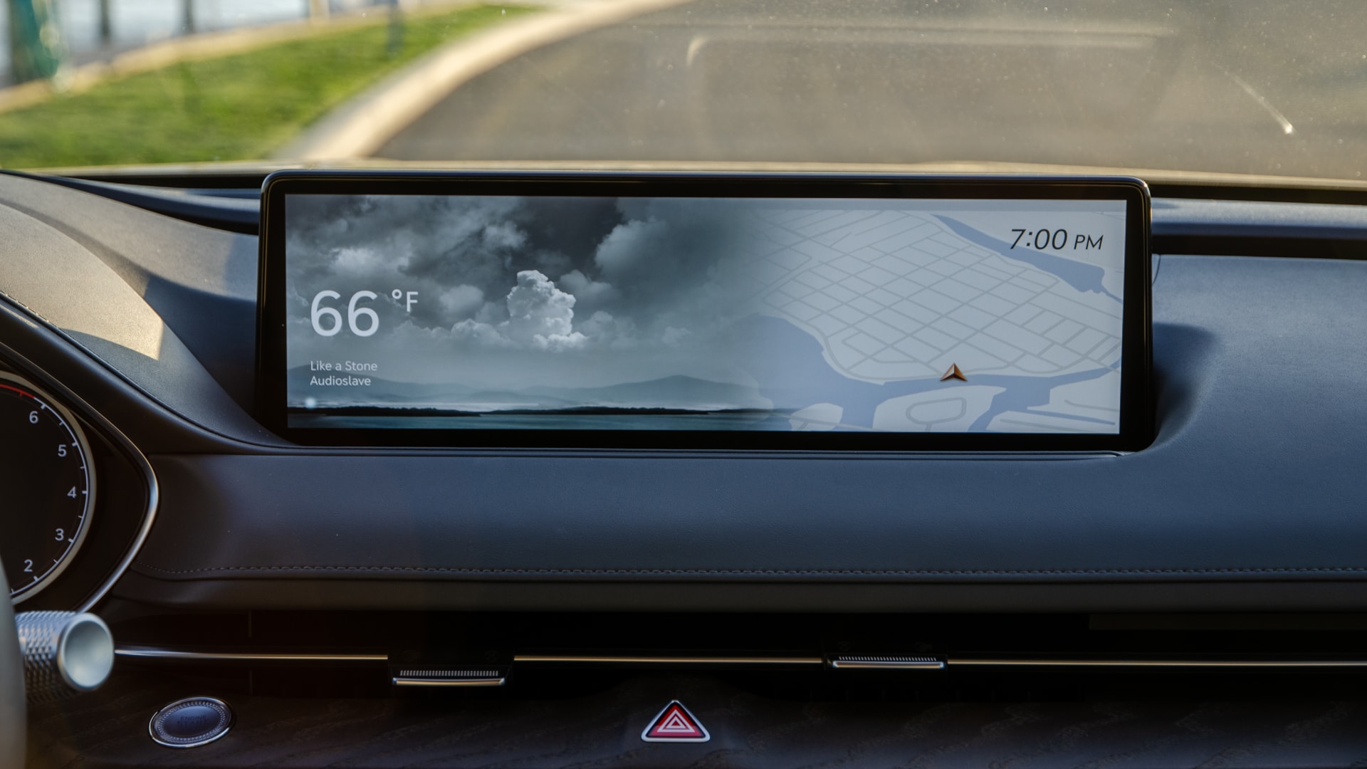 What dominates the interior design, though, is its massive central infotainment screen. It’s incredibly wide and features ultra high-resolution graphics, with crisp images and clear font. I also love that the screen featured a sort of screensaver function; if you don’t use it for a little bit, the screen changes to a screensaver that only displays the current weather conditions on the left side, the time, and the navigation on the right side. Not only does it look fantastic, there’s a calming affect that it has, as the screensaver temporarily stops the constant wave of car information from entering your brain. It’s a simple, seemingly unnecessary feature, but one I enjoyed very much.
