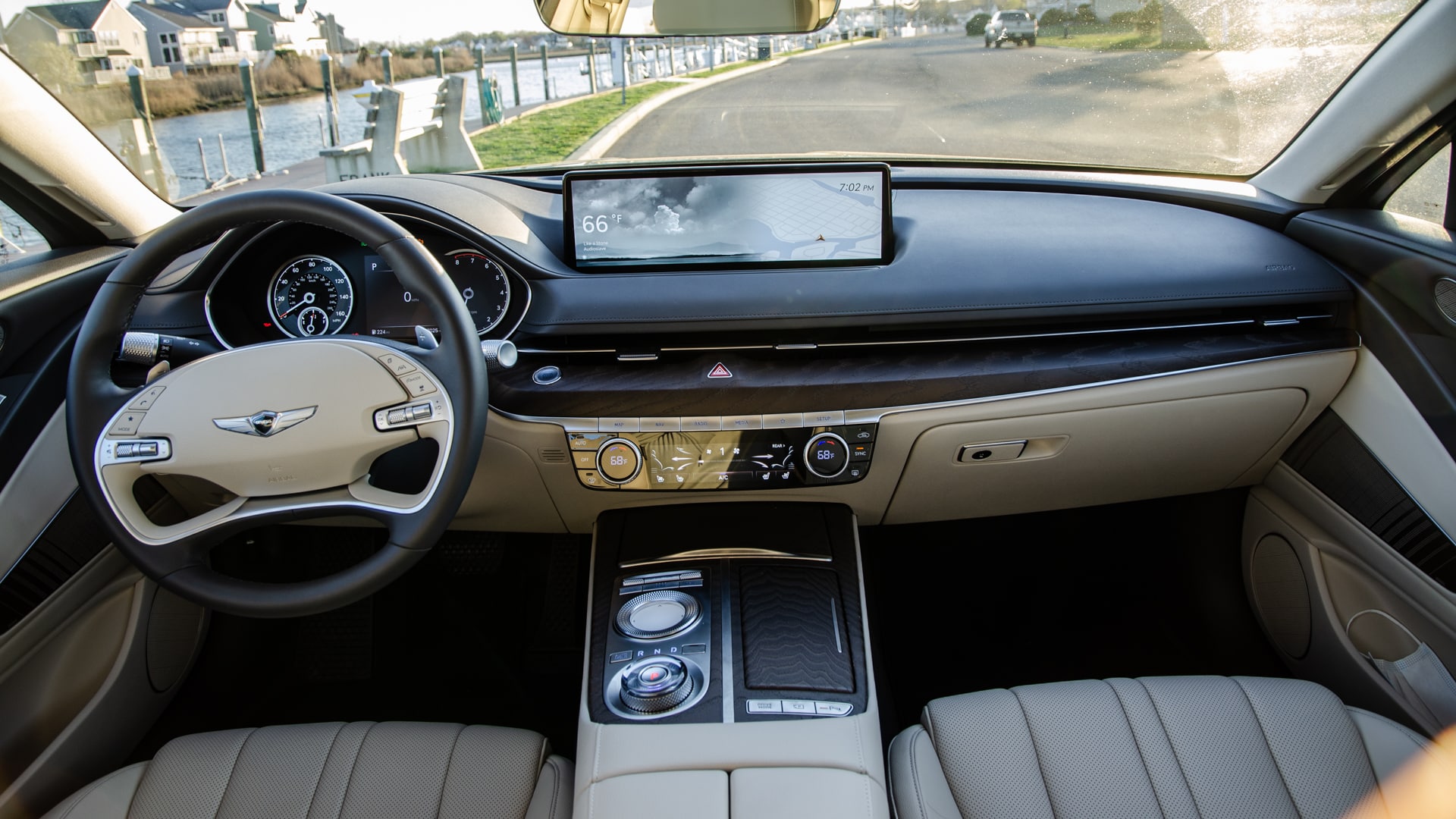 My test car also had the Anthracite Beige interior with ash wood trim. I would have preferred a darker interior color, something like a brown or a cognac, but the beige was fine. I did like the dark grey accents, such as the steering wheel and upper dashboard.
